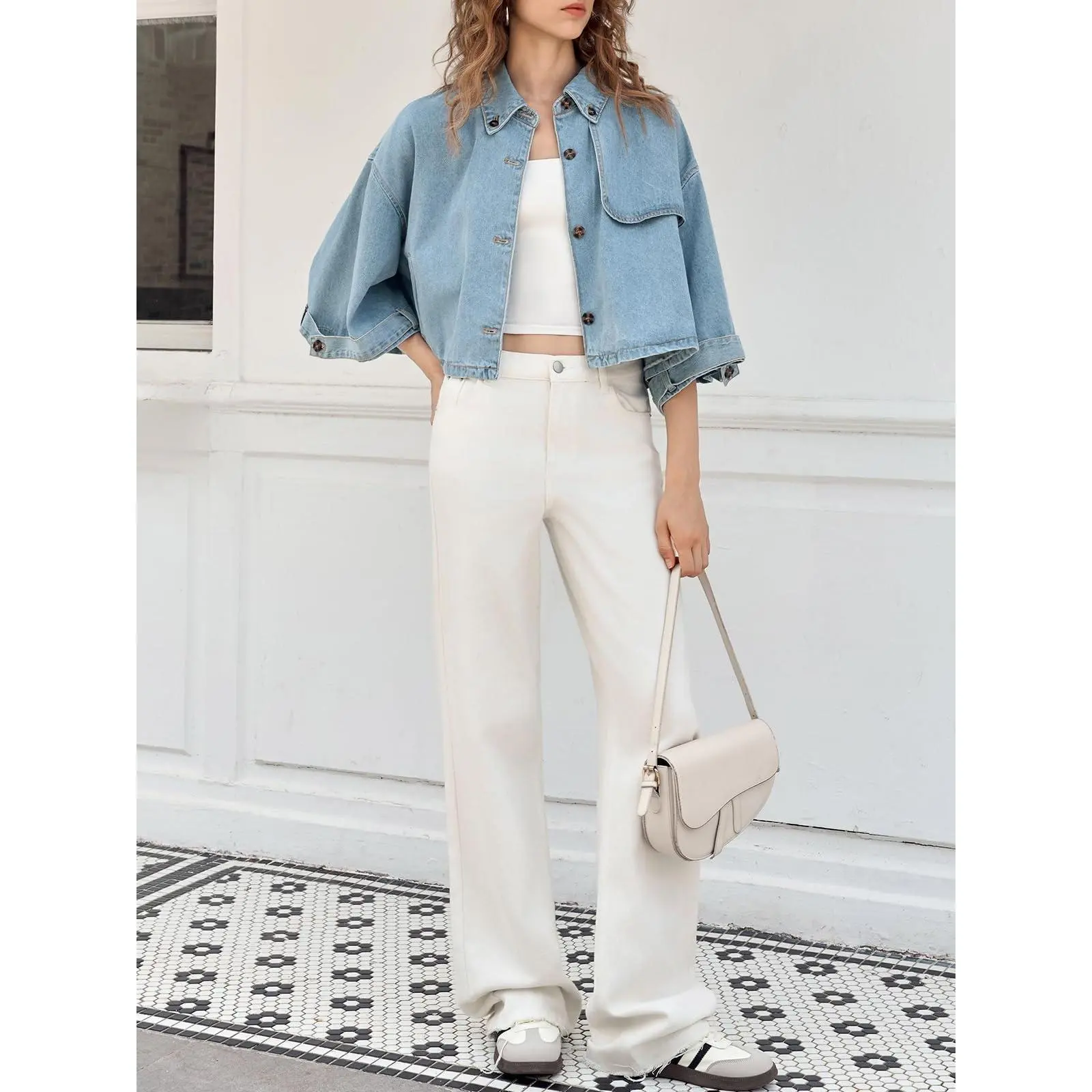 ·Trendy Design: Featuring a stylish collared design and button down front, this basic denim jacket is an ideal crop cape coat that adds a chic touch to your autumn outfits.