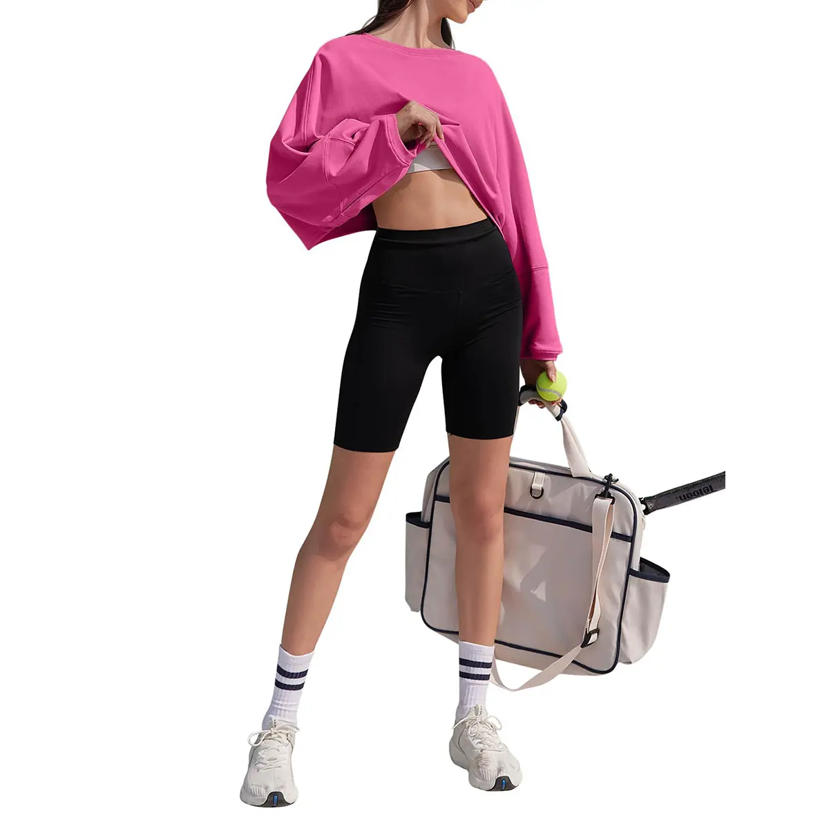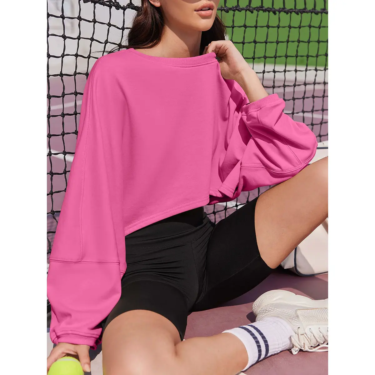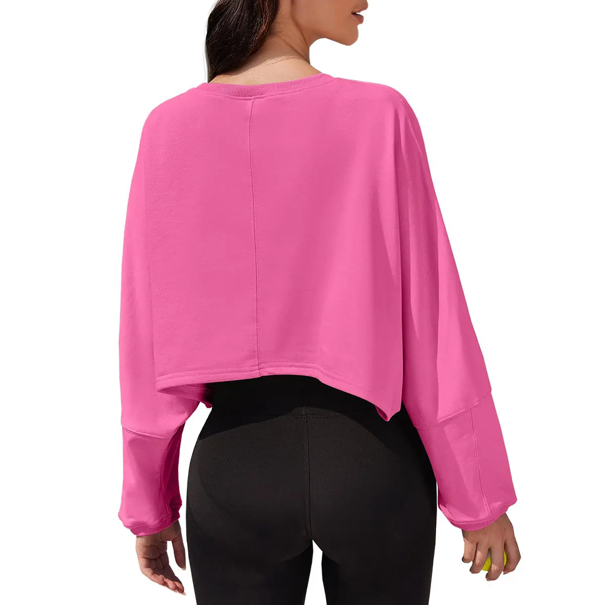 Beotyshow Womens Long Ballon Sleeve Sweatshirts Tops Cropped Crew Neck Loose Fit Casual Workout Shirts