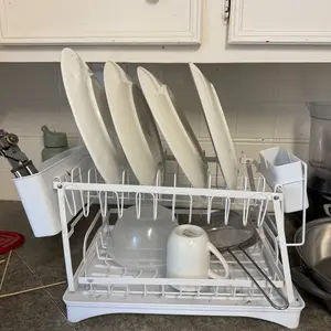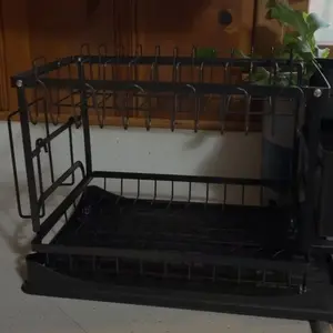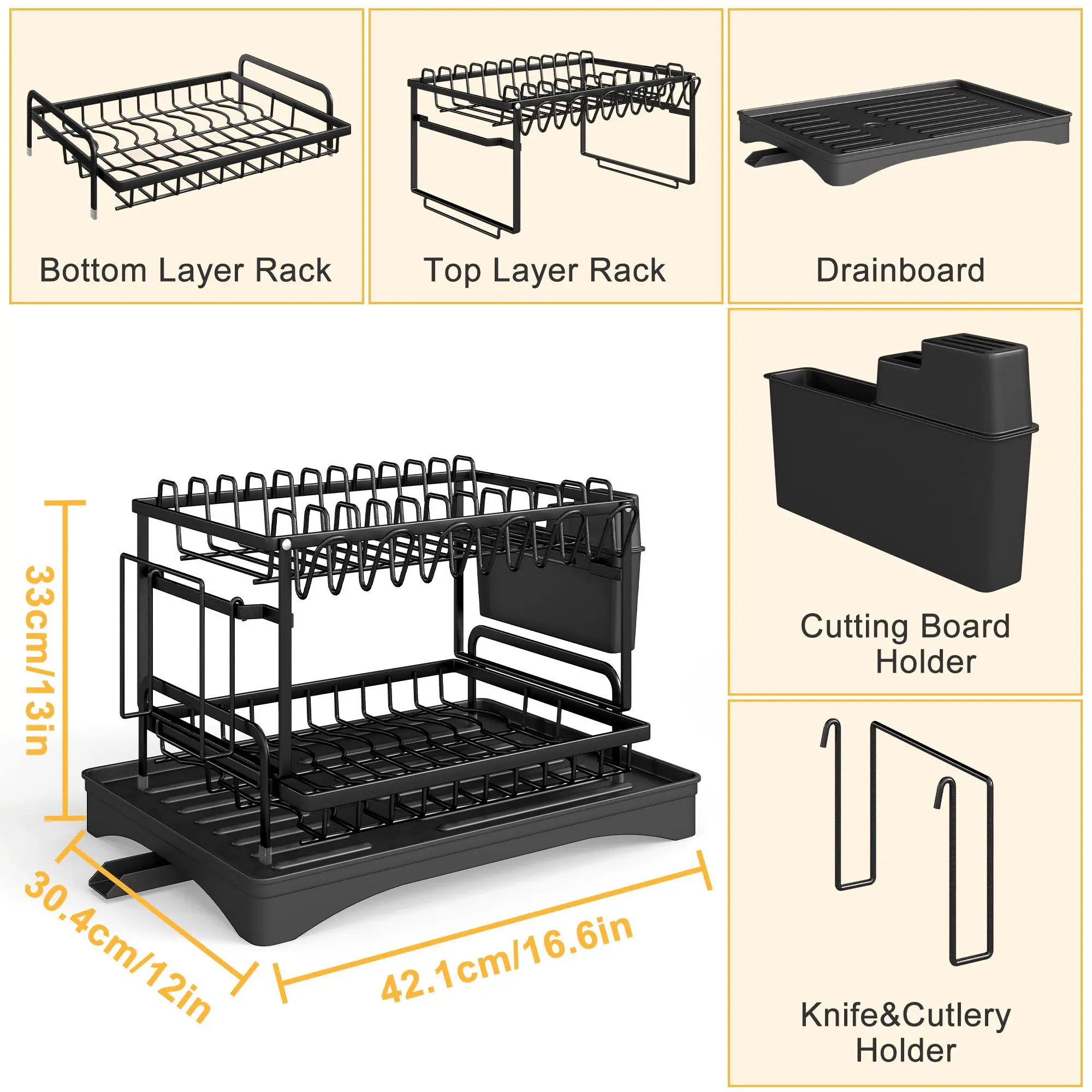 【Double-Layer Storage, Maximized Capacity】- This kitchen storage drainer set includes a double-layer dish rack, a cutting board rack, a drain base, a knife/dish rack, a cup rack, and two dish sponges. This double-layer drainer provides ample storage space, effectively reducing countertop clutter and accommodating kitchen utensils of various sizes, making the most of every inch of your kitchen space. Dimensions: 16.6 (L) * 12 (W) * 13 (H) inches