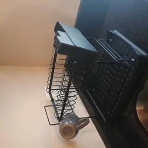 【Stylish Modern Design】- This drain rack features a matte black finish and a minimalist design, adding a modern touch to any kitchen. It complements various kitchen styles perfectly, combining practicality and aesthetics.
