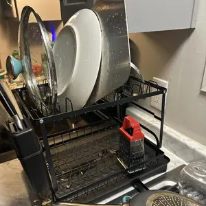 【Space-Saving Vertical Design】- The vertical double-layer design is ideal for kitchens with limited countertop space, maximizing draining capacity while maintaining a compact footprint. Keep your kitchen neat and organized without sacrificing functionality.