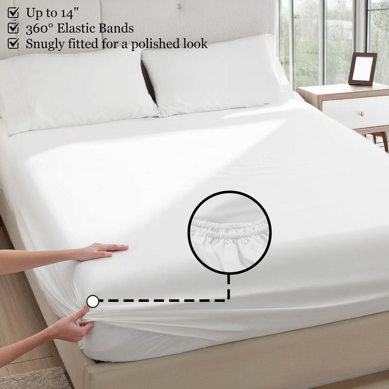 ·️ Superior Comfort & BreathabilityExperience unmatched comfort with BePatio's 4-piece sheets. Their superior breathability and cooling outperform hotel linens and high-thread-count options. The premium microfiber blend offers exceptional softness and strength. Featuring full elastic on the fitted sheet for a secure, sleek fit, enjoy a truly restful night's sleep.