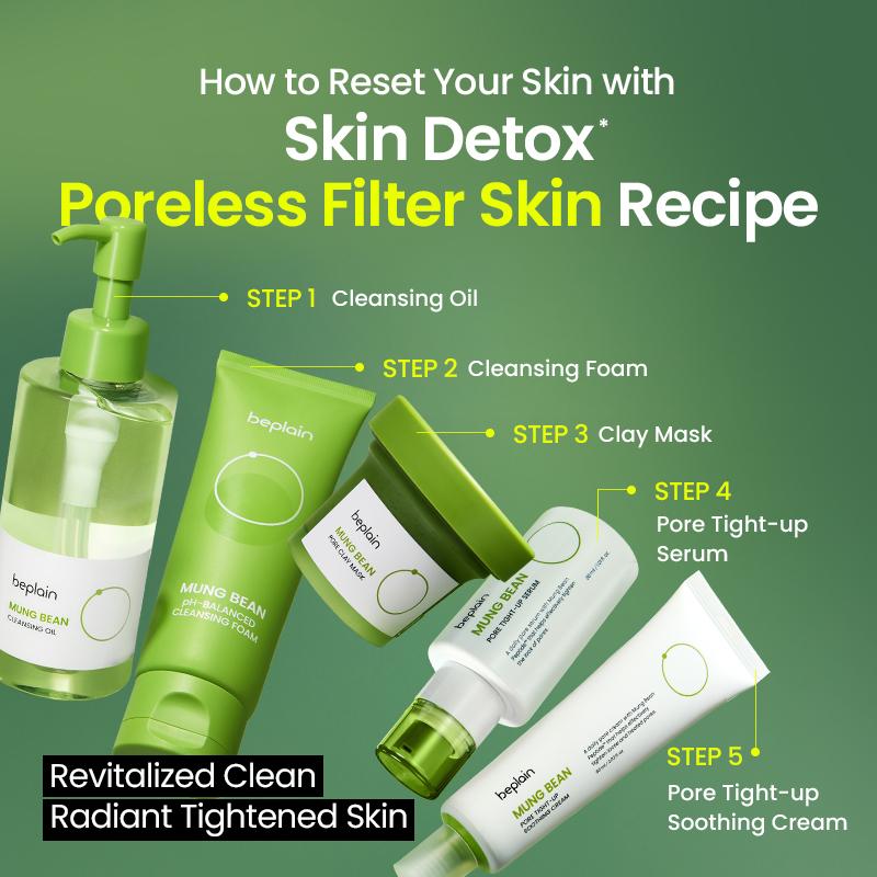 Mung Bean Cleansing Oil 200ml , Mung Bean Cleansing Foam 160ml, Mung Bean Clay Mask 120ml, Mung Bean Peptide Soothing Serum 50ml, Mung Bean Peptide Soothing Cream 60ml