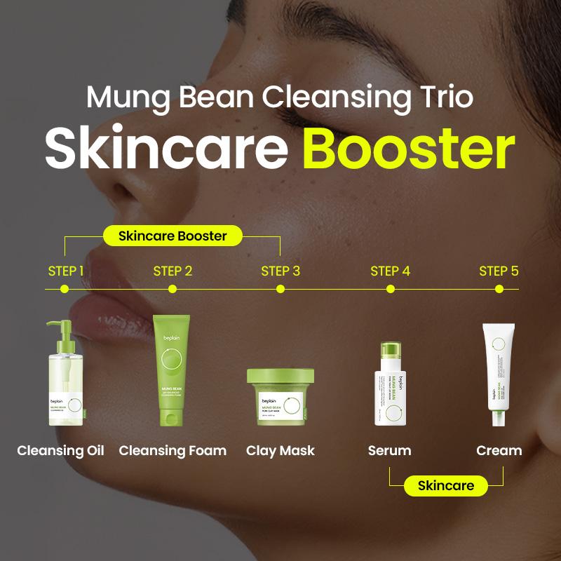 Mung Bean Cleansing Oil 200ml , Mung Bean Cleansing Foam 160ml, Mung Bean Clay Mask 120ml