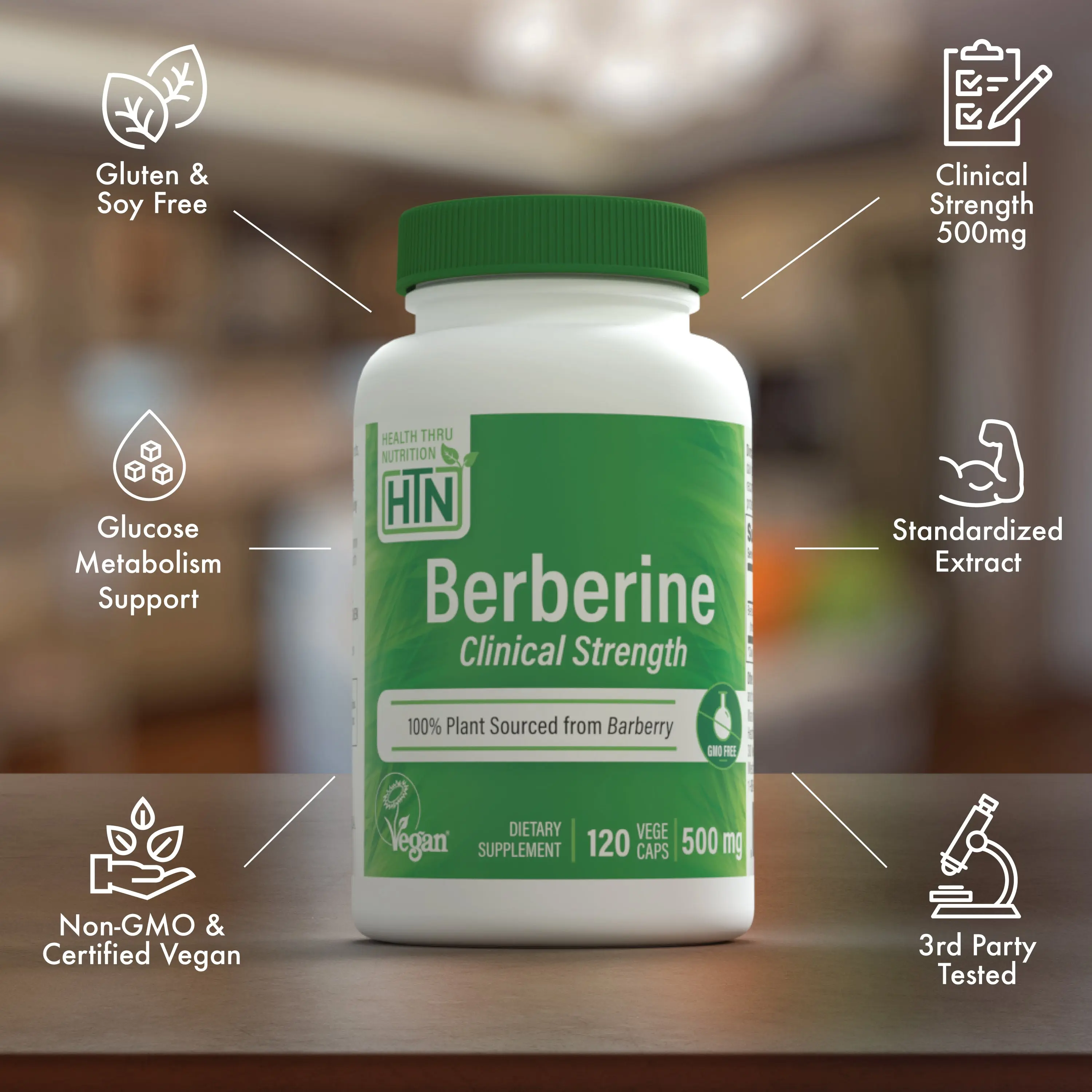 Health Thru Nutrition Berberine 500 mg is a premium dietary supplement derived from Berberis vulgaris, a plant traditionally used for wellness support. This vegan-friendly formula provides a concentrated source of berberine and is free from artificial colors, flavors, preservatives, gluten, soy, and dairy.