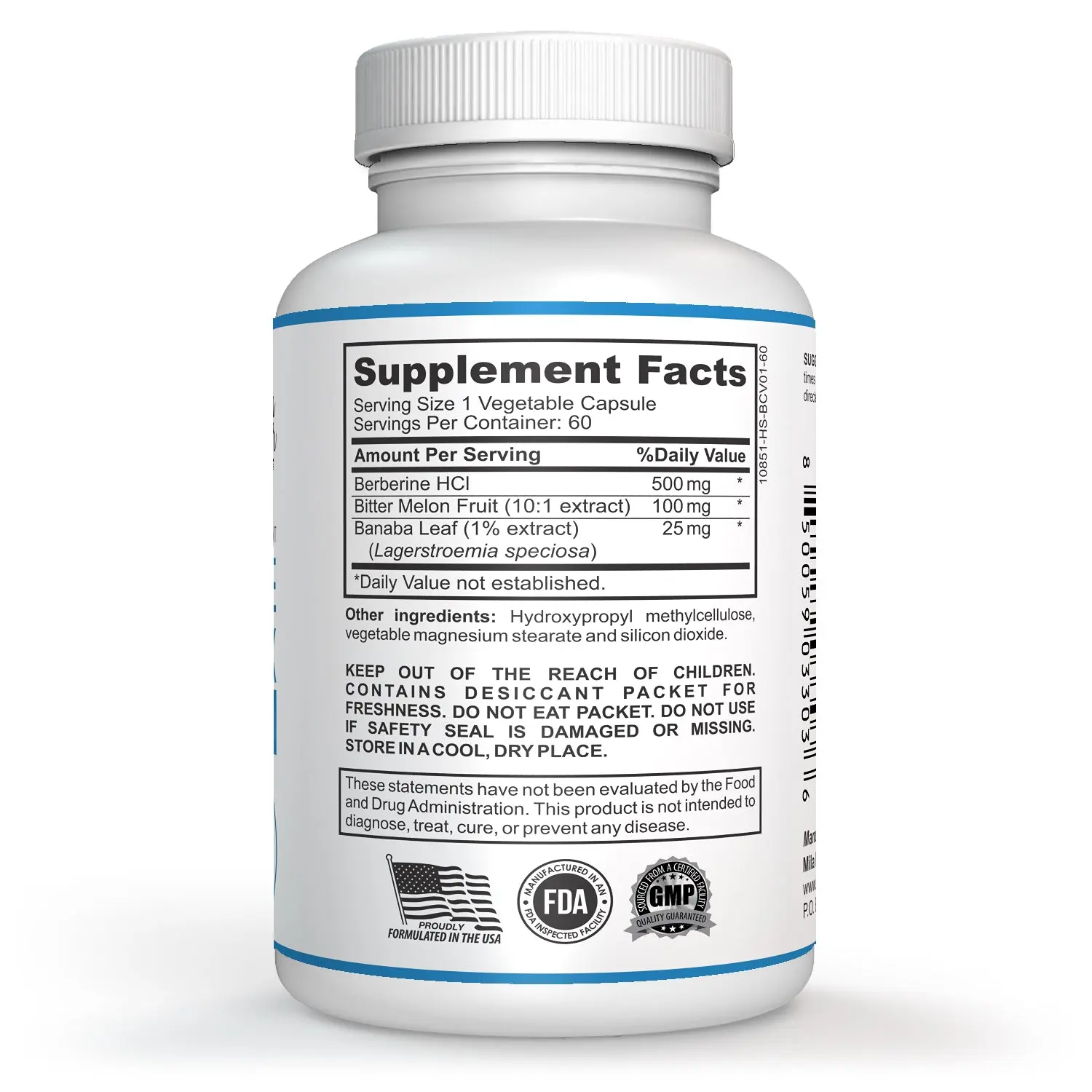 ·The Milamiamor Berberine is a special formula with 500mg of Berberine HCL, 100mg of Melon Fruit and 25mg of Banaba Leaf. This combination may help support cognitive & gastrointestinal health, cholesterol, and lipid levels within normal ranges.