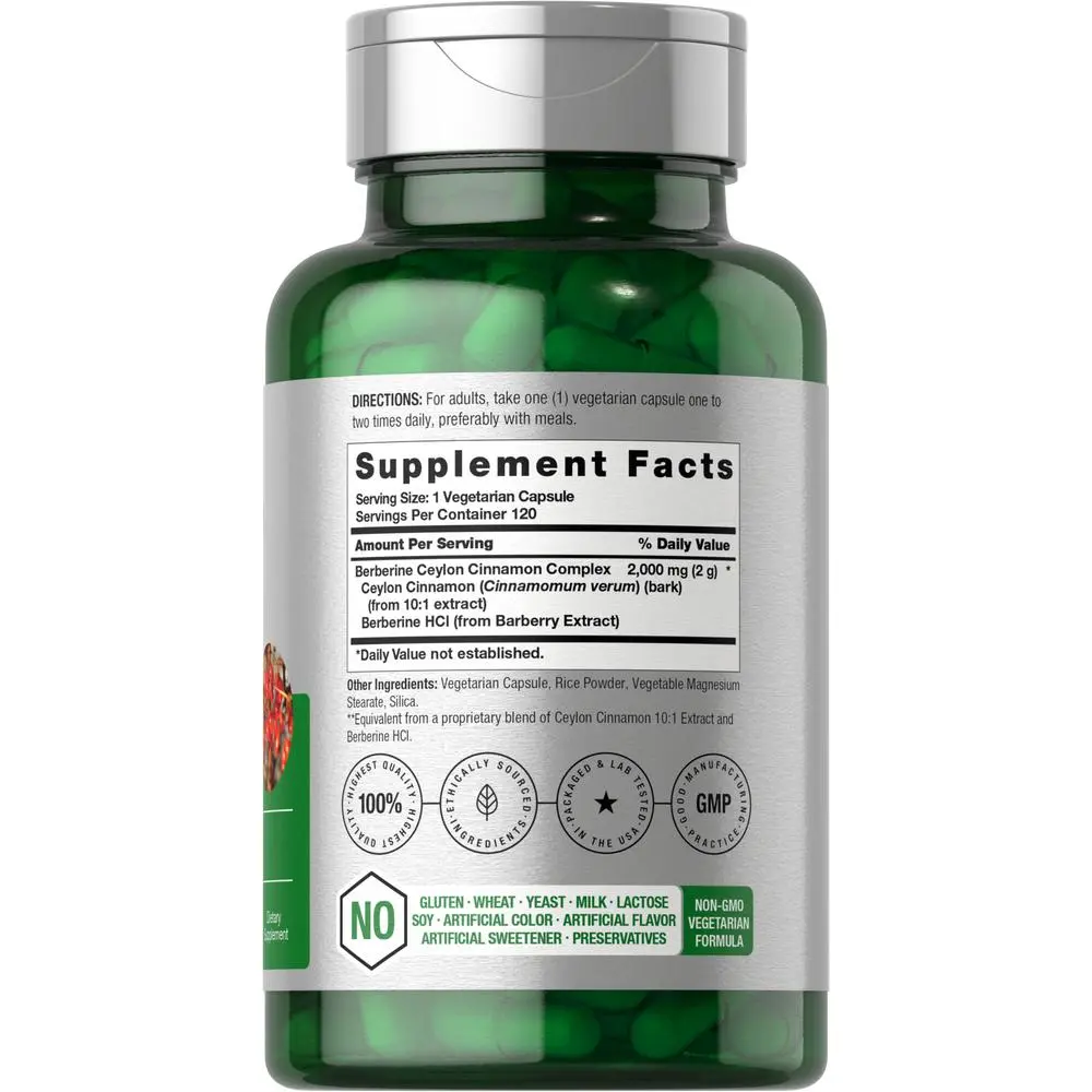 Our formula is scientifically-designed, combining the equivalent of 2,000 mg of Ceylon Cinnamon plus Berberine (hydrochloride) from Barberry extract, the most optimal forms of this iconic combination. Vegetarian capsules are non-GMO, gluten-free, and will now make the perfect addition to your supplement routine.