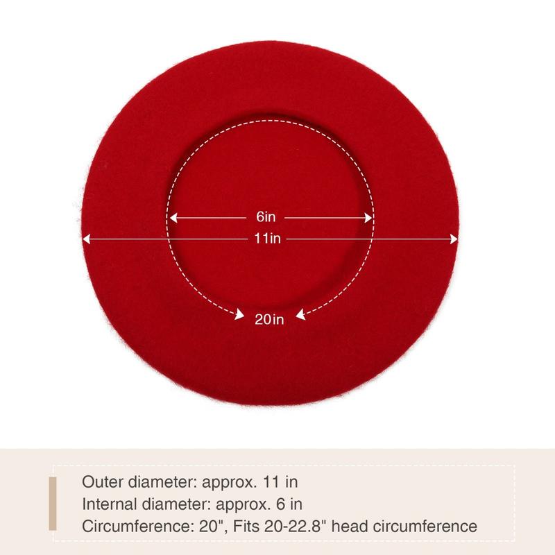 【Beret Size】 - Hat circumference: 56-58cm/22-22.83" ; diameter: 27.5cm/10.82", inside diameter about 13.5cm/5.31"(One Size Fits Most Adults)