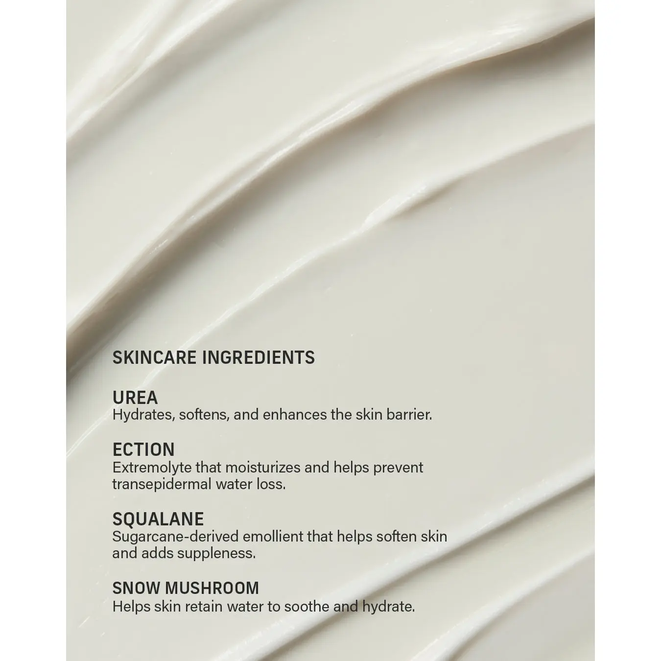 | Ingredients | Water (Aqua), Caprylic/Capric Triglyceride, Glycerin, Caprylic/Capric/Myristic/Stearic Triglyceride, Cetearyl Alcohol, Squalane, Glyceryl Stearate, Fragrance (Parfum), Propanediol, Polymethyl Methacrylate, Urea, Hydrogenated Polyisobutene, Tremella Fuciformis Sporocarp Extract, Ectoin, Behenyl Alcohol, Phenoxyethanol, Ammonium Acryloyldimethyltaurate/VP Copolymer, Caprylyl Glycol, Acrylates/C10-30 Alkyl Acrylate Crosspolymer, Betaine, Potassium Sorbate, Polysorbate 20, Sodium Hydroxide, Hexylene Glycol, Linalyl Acetate, Citrus Aurantium Bergamia Peel Oil, Tetramethyl acetyloctahydronaphthalenes, Linalool, Limonene, Lavandula Oil/Extract, Pinene, Citrus Aurantium Amara Peel Oil, Alpha‑Terpinene, Beta‑Caryophyllene, Camphor, Citral, Geraniol, Geranyl Acetate, Terpineol, Terpinolene. |