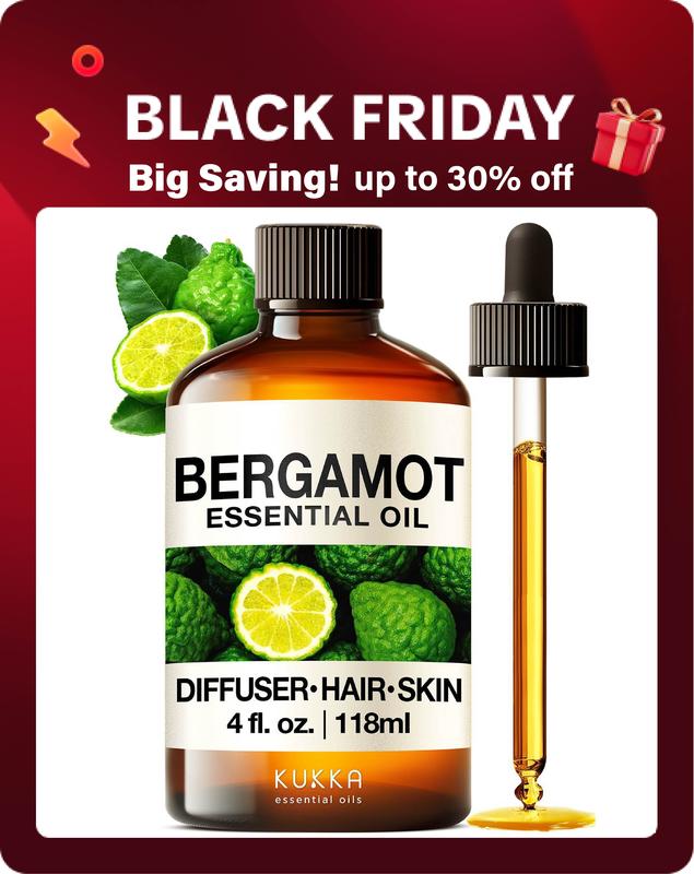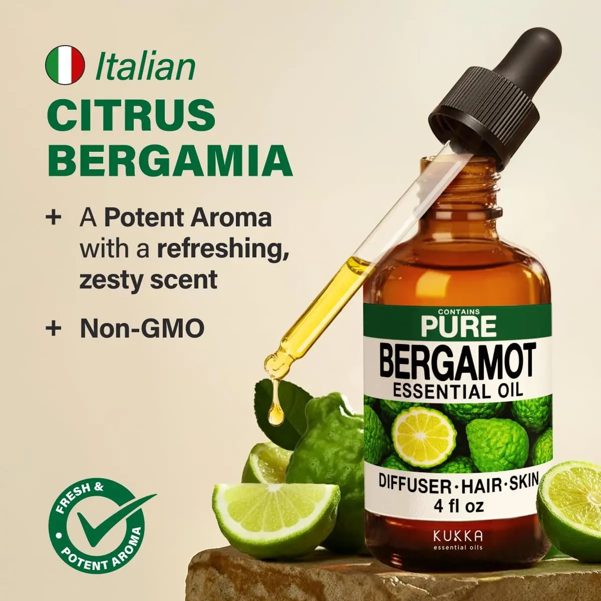 5. KUKKA Bergamot essential oils - (4 fl oz) Aromatherapy for Hair & skin Bergamot Essential Oil for DIY & Soap Making