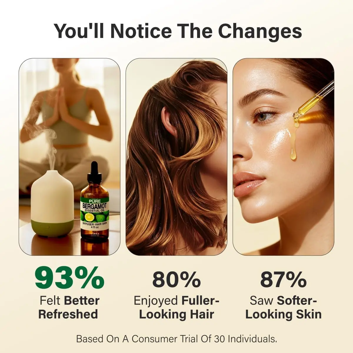 Enhances spaces with a citrusy aroma through diffusing. Ethically sourced, free from animal testing and non-Gmo. Improves appearance of fuller-looking hair when added to hair care routines. Made from Italian bergamot rinds for a natural product. Helps improve overall skin appearance when incorporated into skincare. Can be used in diffusers, hair oils, or mixed with moisturizer for skin #bergamot #hairandskin #ethicallysourced #oils #oildiffusers
