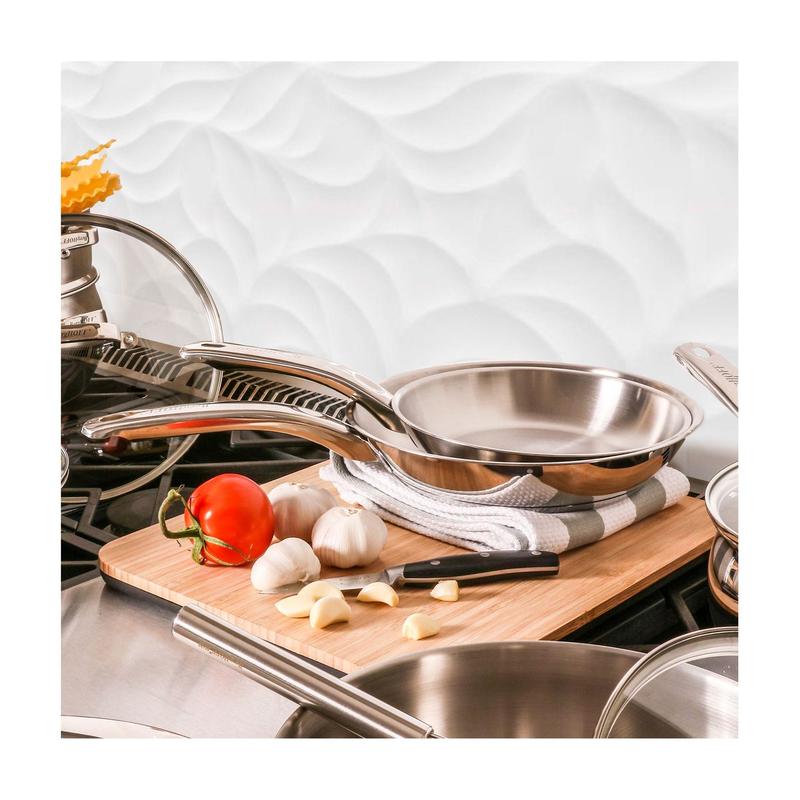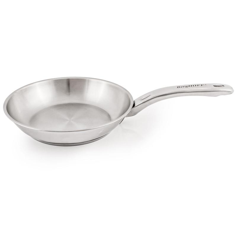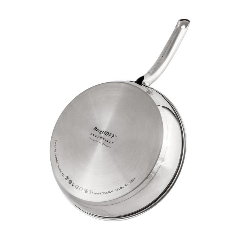 Elevate your cooking experience with this fry pan, a masterpiece of form and function. This pan's elegant curves and mirrored finish add a touch of sophistication to any kitchen, while its tri-ply base ensures even heat distribution on any cooktop, including induction. It's perfect for everything from searing steaks to sauting vegetables. From BergHOFF.