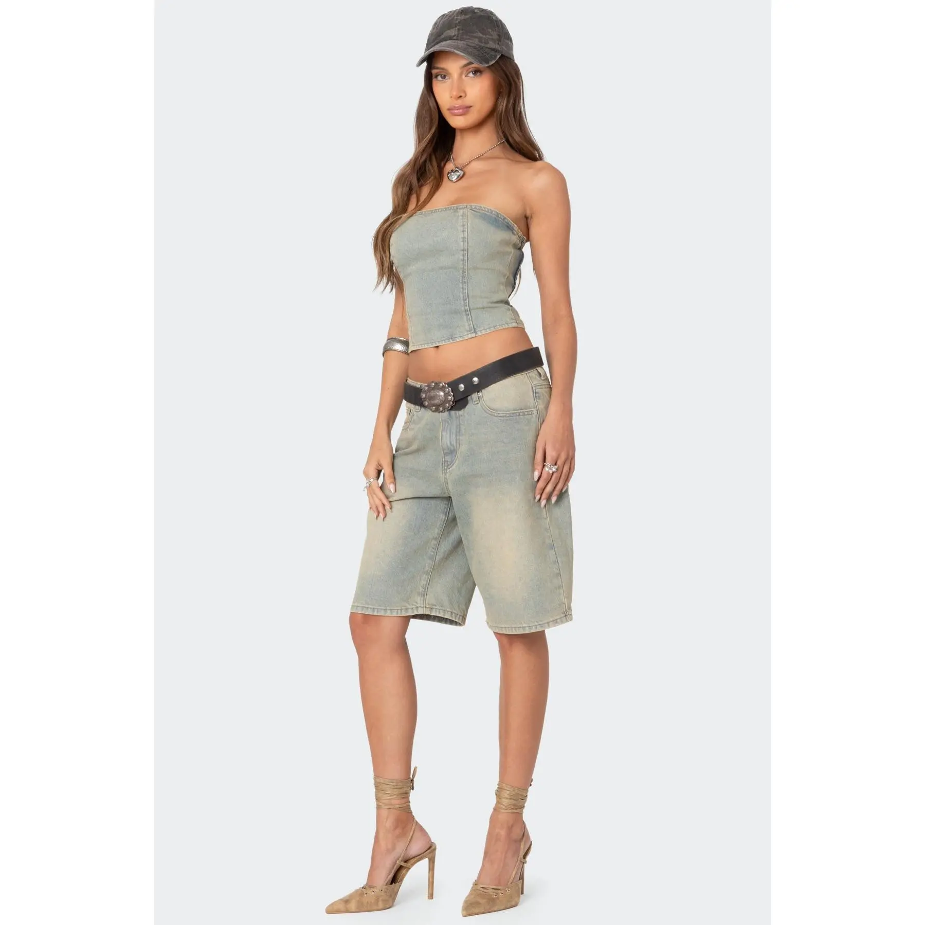 Edikted denim jeans are 100% cotton #edikted #ediktedjeans #overalldress #bermudashorts #ediktedtop