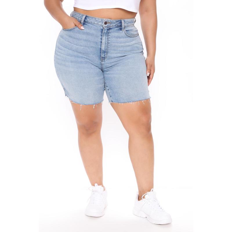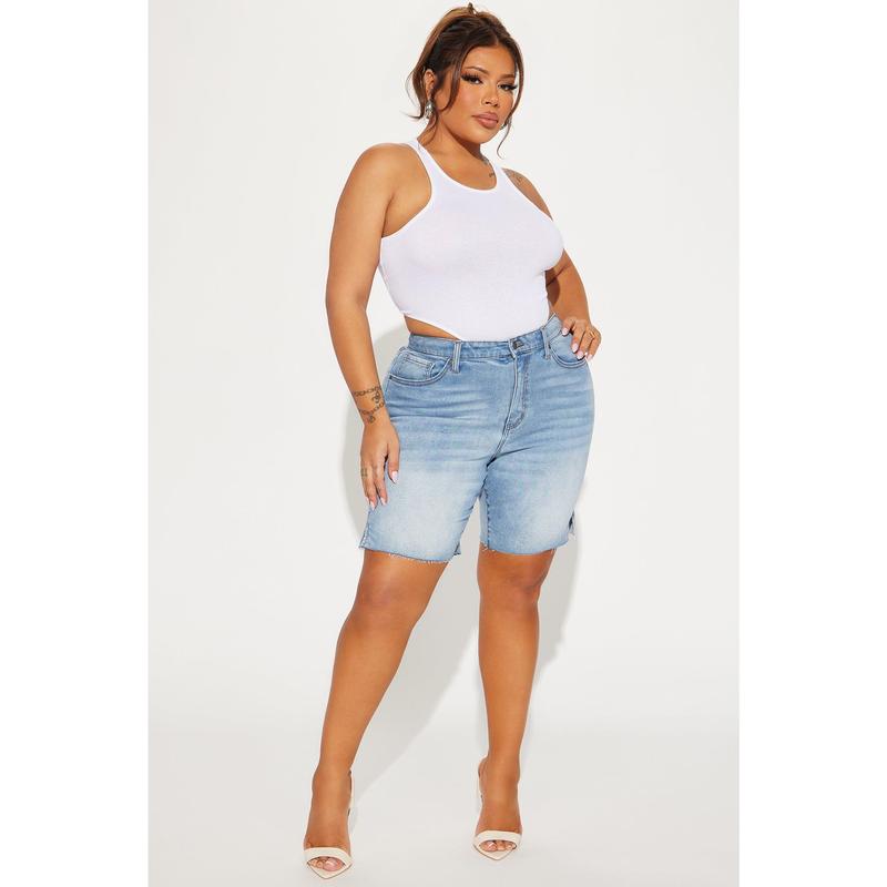 Everything's Good Super Stretch Denim Bermudas - Light Blue Wash