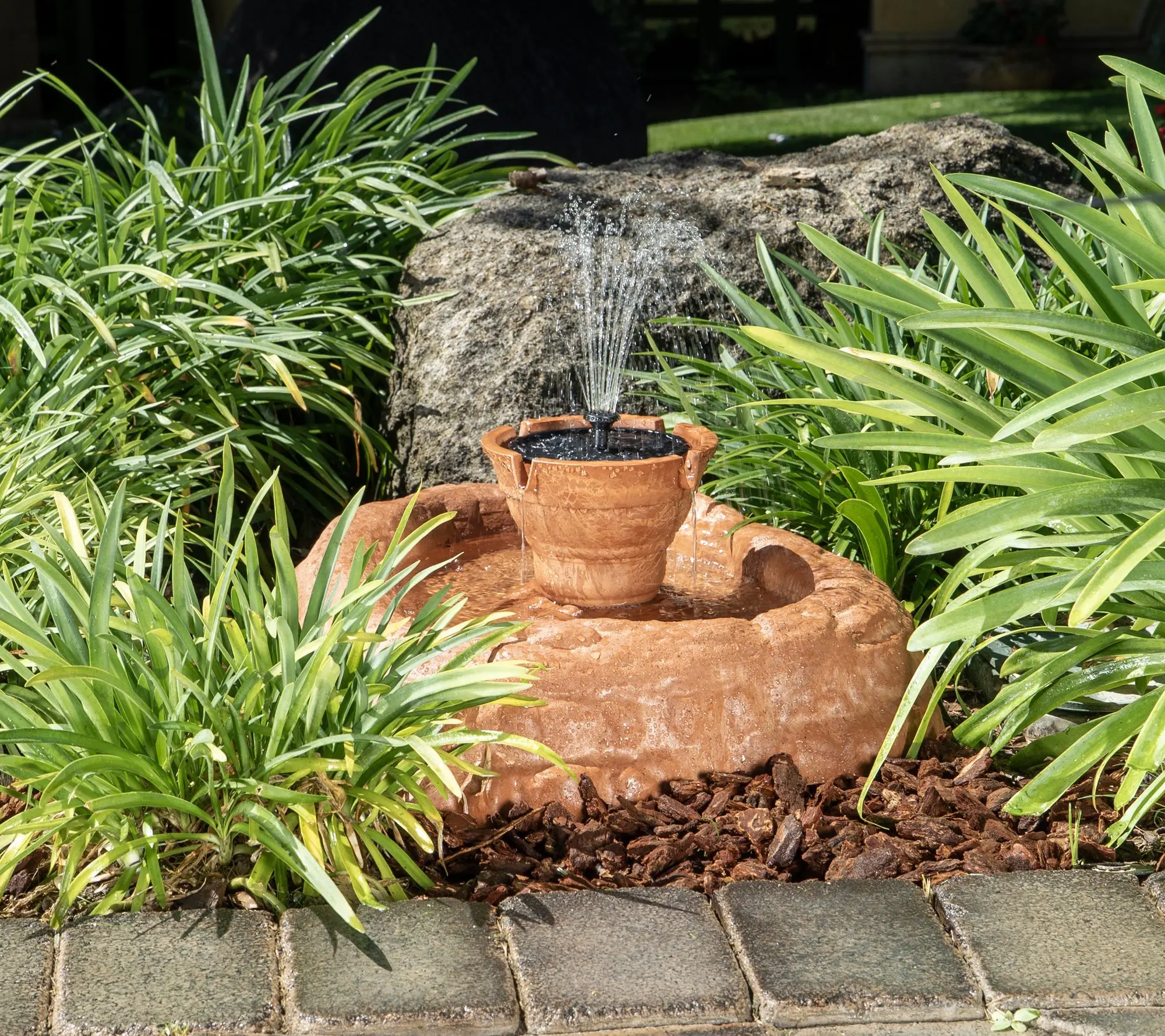 This cordless fountain runs on batteries and goes literally anywhere. I tucked mine near our patio for a relaxing vibe with zero mess or outlets needed. #smallspacegarden #pondlife #cordlessfountain #gardengoals #backyardvibes #fyp