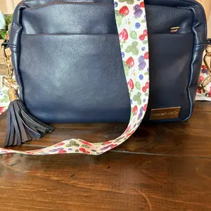 I love this strap is so cute and different! It surprisingly matches a lot of different bags with all the colors in it!