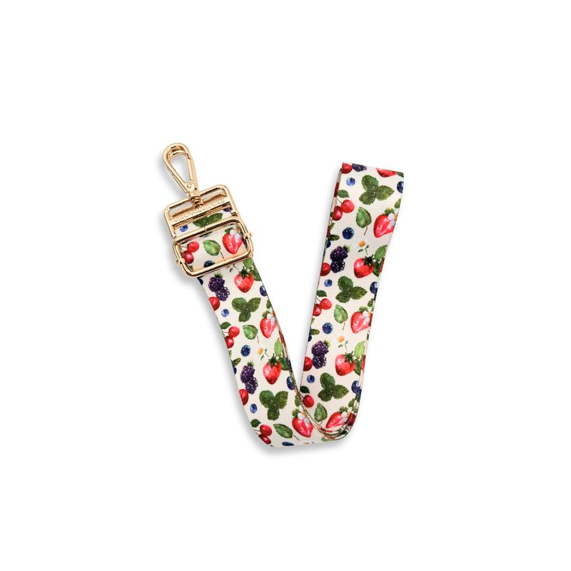 Dress up your fave purse and let the Berry Blossom Strap bring the picnic wherever you go! Featuring a juicy mix of strawberries, blueberries, and leafy greens, this sweet design is part of our picnic collection. It’s the easiest way to add a flirty, fruity twist to your everyday look—because your strap should be just as cute as your outfit!