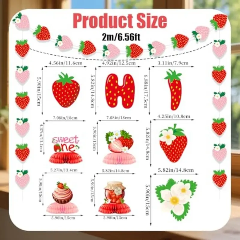 Berry First Birthday Party Decorations Strawberry Theme Banner Hanging Swirls Honeycomb Balls Complete Set Pink and Red Baby Shower Fruit Party Decor