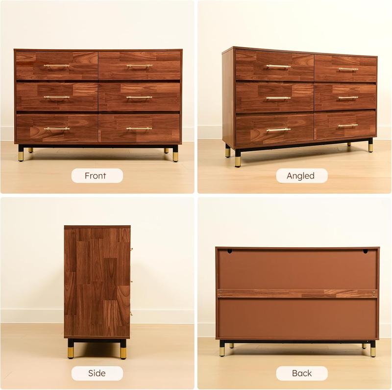 ·Perfect as a bedroom dresser, closet organizer, or accent piece in your living room, this walnut dresser adapts to various spaces and decor styles. It fits seamlessly into any setting.