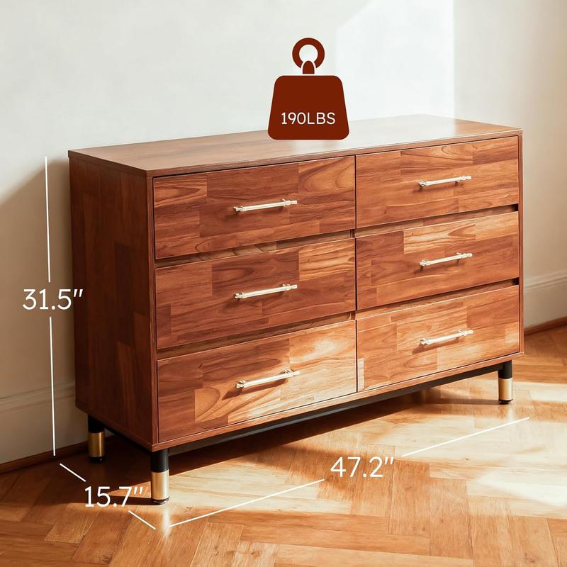 ·Designed with six large drawers, this dresser offers ample space for clothes, accessories, and linens. It helps you keep your room neat and organized, ensuring a tidy living environment.