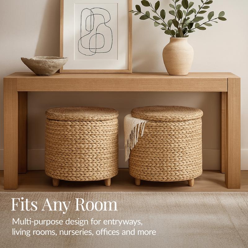MULTI-PURPOSE DESIGN W/ LID: Lift off storage offers hidden storage to organize blankets, toys, essentials, and more. Also functions as a footrest, side table, or decorative accent.
