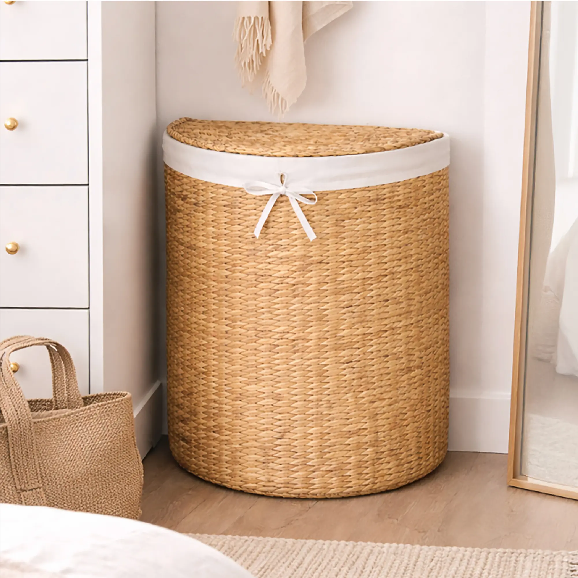 HANDWOVEN FROM NATURAL MATERIALS: Crafted by skilled artisans from 100% natural, sustainably sourced water hyacinth; handwoven pieces with unique color and texture variations, that may carry a light earthy scent that naturally fades within 2472 hours