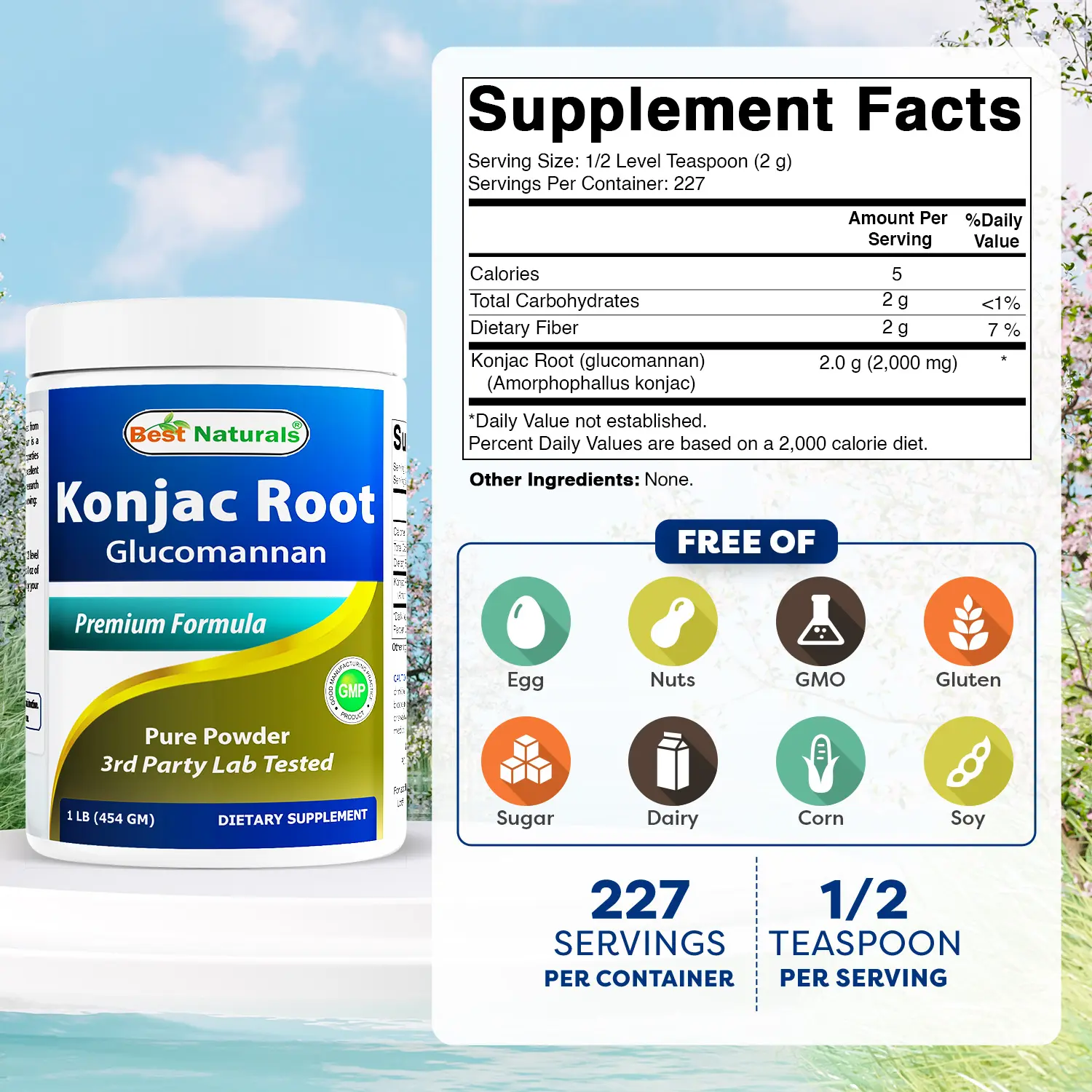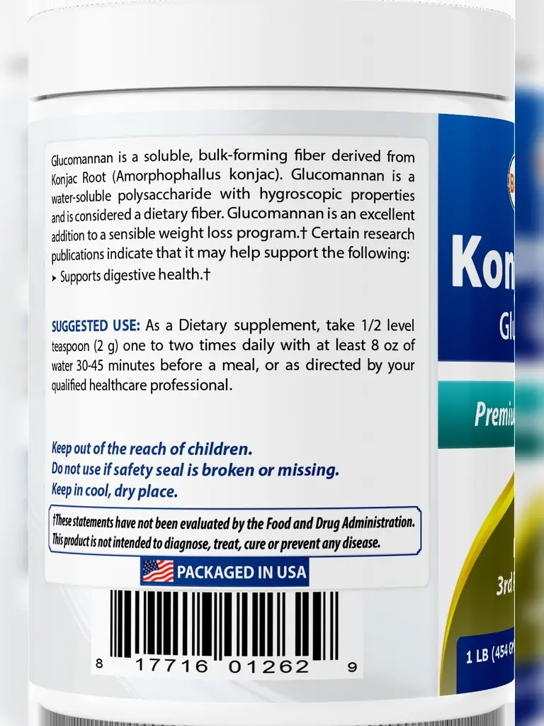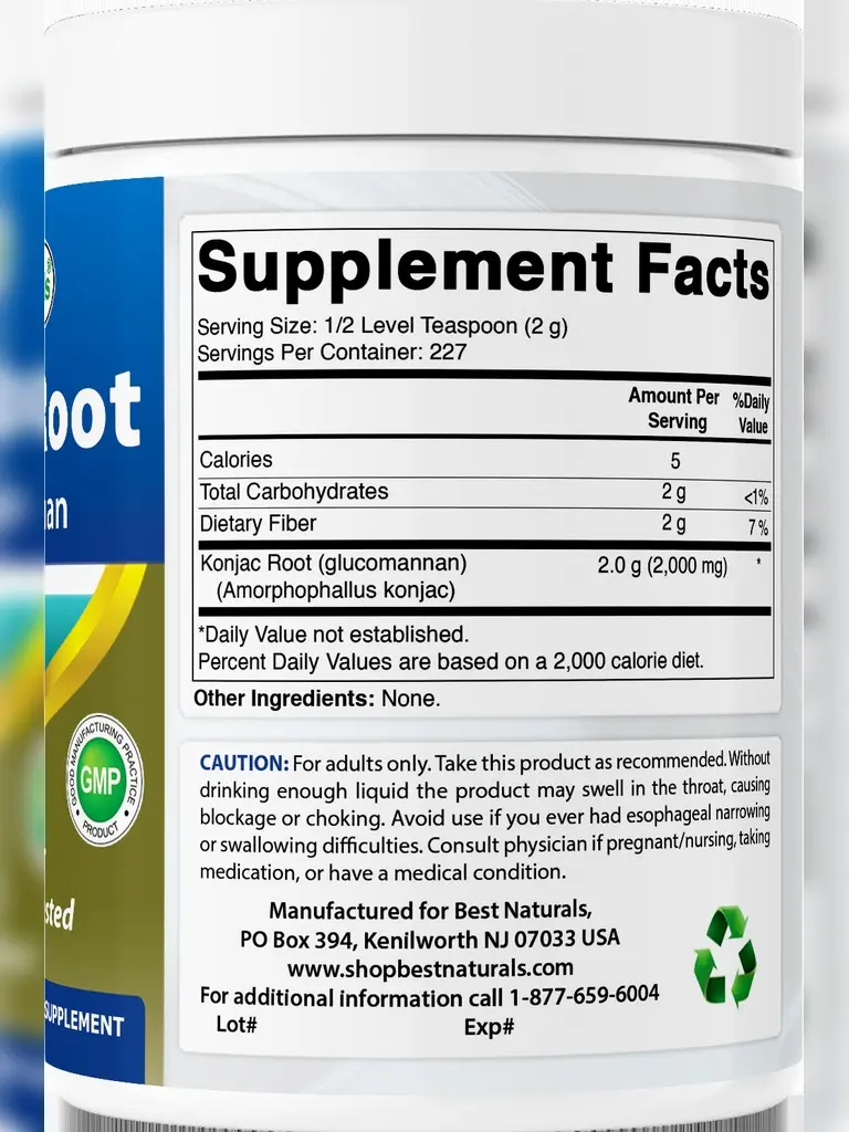 ·½ Level Teaspoon (2g) of Konjac Root Glucomannan per Serving, 228 Servings per bottle.