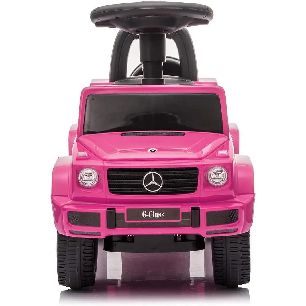 Take your child for a stylish ride around the neighborhood with the Best Ride On Car Kids Toddler Outdoor Stroller Mercedes G-Wagon Push Car.If this baby stroller toy looks familiar, that's because it's modeled after the Mercedes G-Wagon, a high-end SUV that's the perfect vehicle for your up-and-coming trendsetter. The kids' push wagon car features the Mercedes logo and other authentic details, including a large padded steering wheel with working horn and music, padded seat with tufted faux-leather upholstery, working LED lights, and a molded 5th-wheel rear accent. The padded seat has a low design with a high back to help prevent falls; a rear roll board helps prevent tip-overs. There's even hidden storage space beneath the seat for keeping their favorite snacks and toys with them while they scoot around your driveway or down the sidewalk.At the park, the backyard, or around the neighborhood, the Best Ride On Car Kids Toddler Outdoor Stroller Mercedes G-Wagon Push Car keeps your kids safe and entertained all afternoon long.