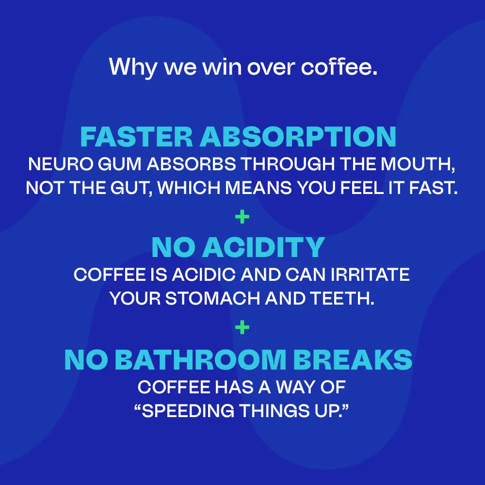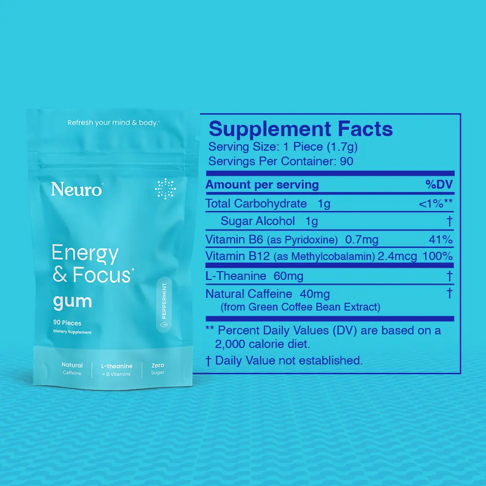 Great energy and focus gum! Gives a clean boost without jitters and is perfect for staying alert on the go. Tastes good, easy to use, and really helps with focus when you need it.