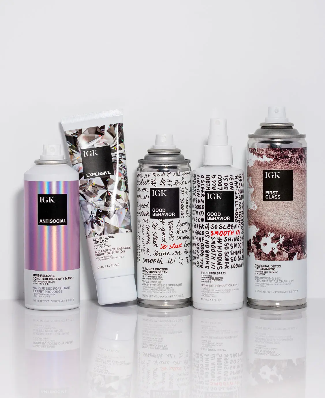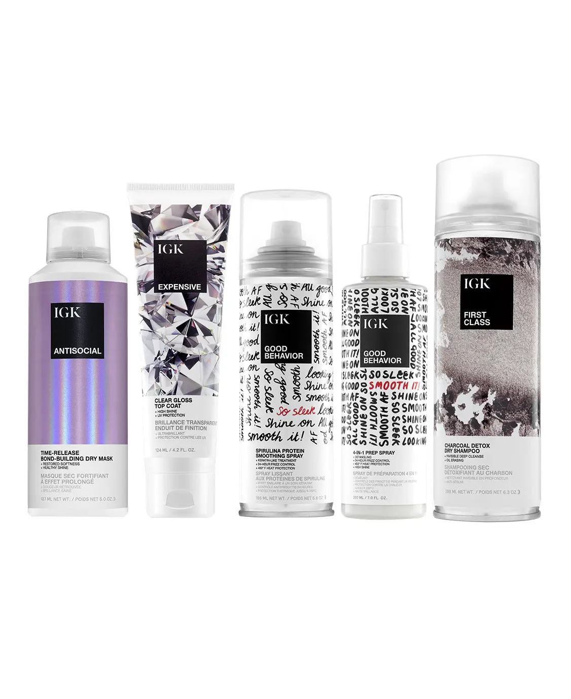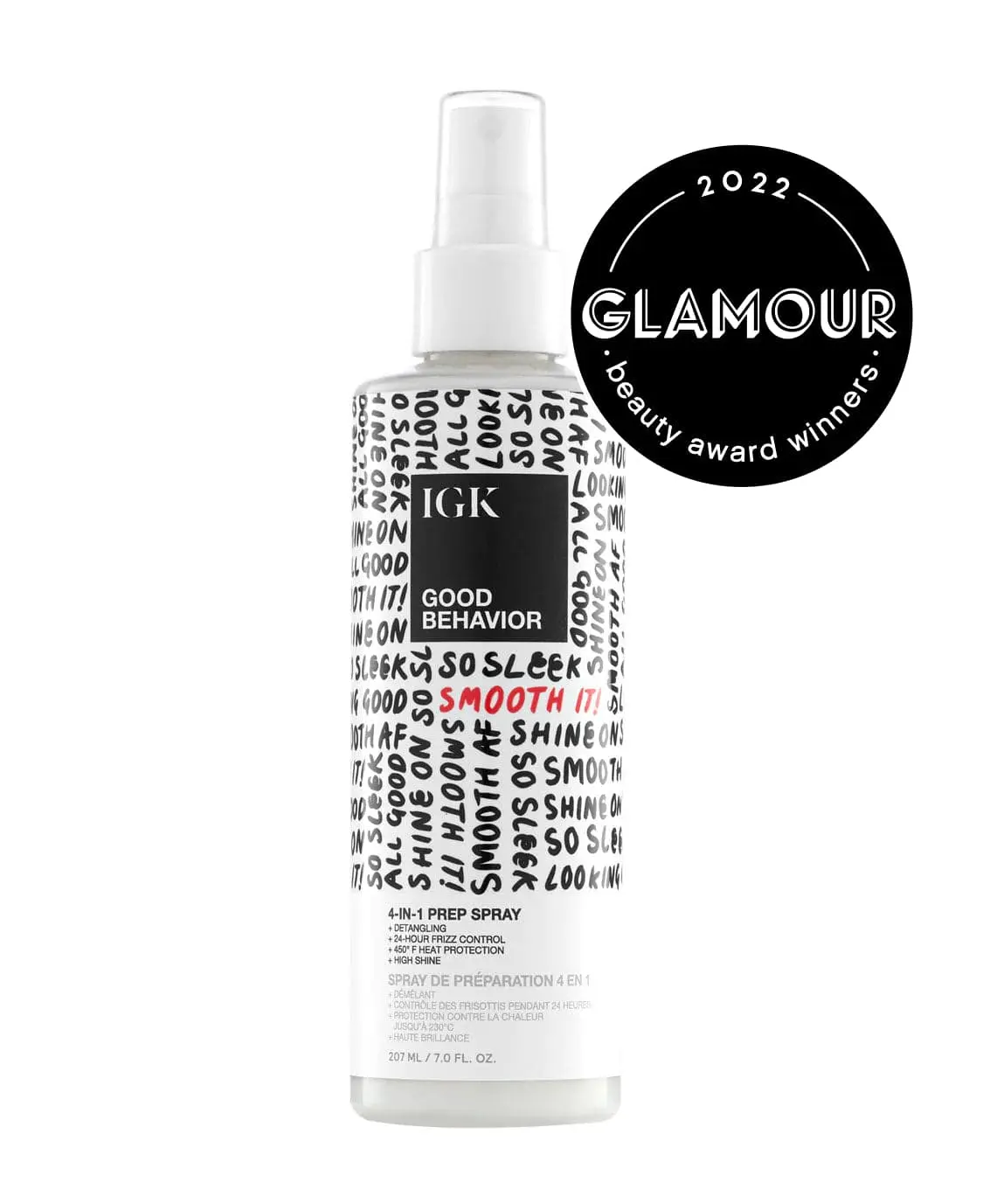 Good Behavior 4 in 1 Prep Spray: This multi-tasking hair prep spray is the first step in any hair routine. It gently detangles, controls frizz for up to 24 hours, protects against heat and adds shine. Its weightless formula primes the hair for any styler—leaving it smooth, shiny and frizz-free.