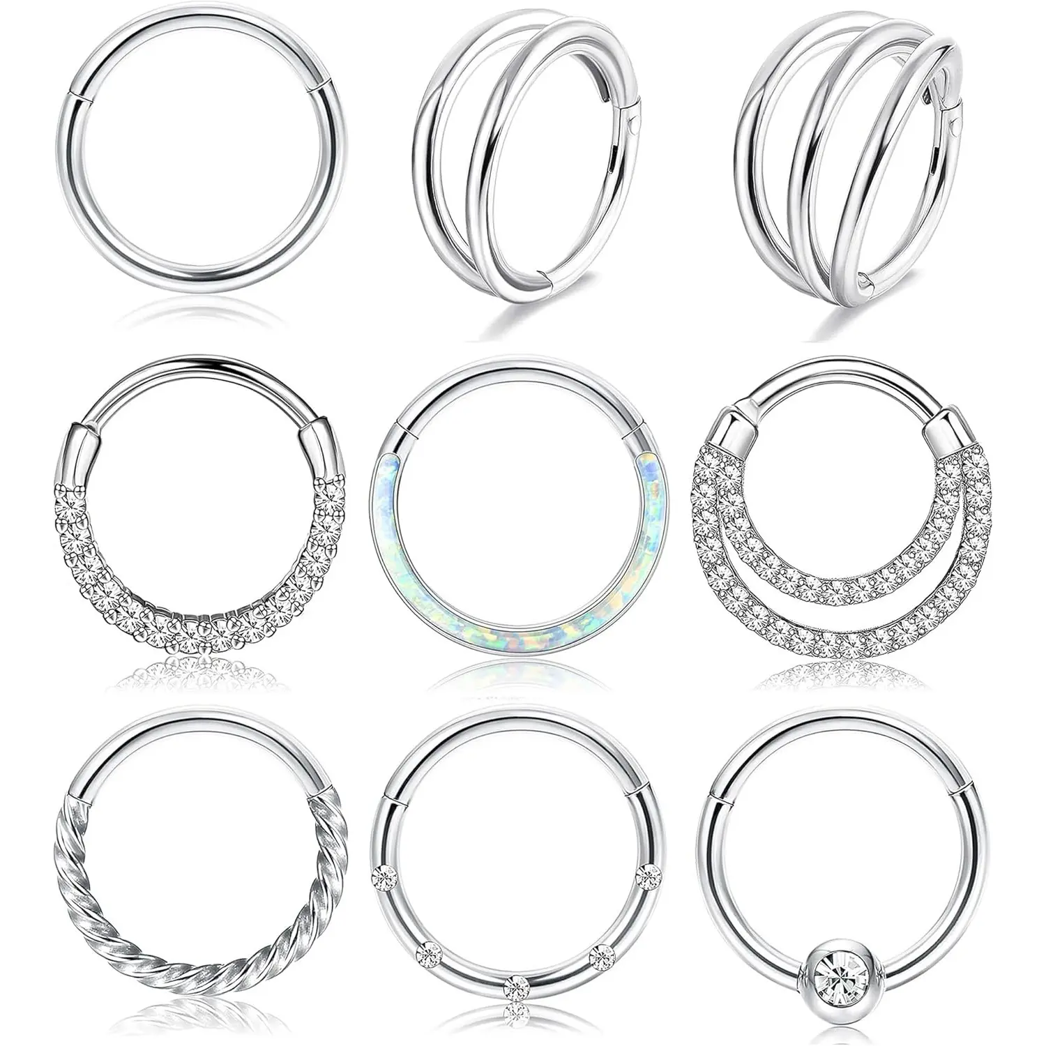 ·Model Show: Hypoallergenic Opal CZ Septum Clicker Segment Nose Rings