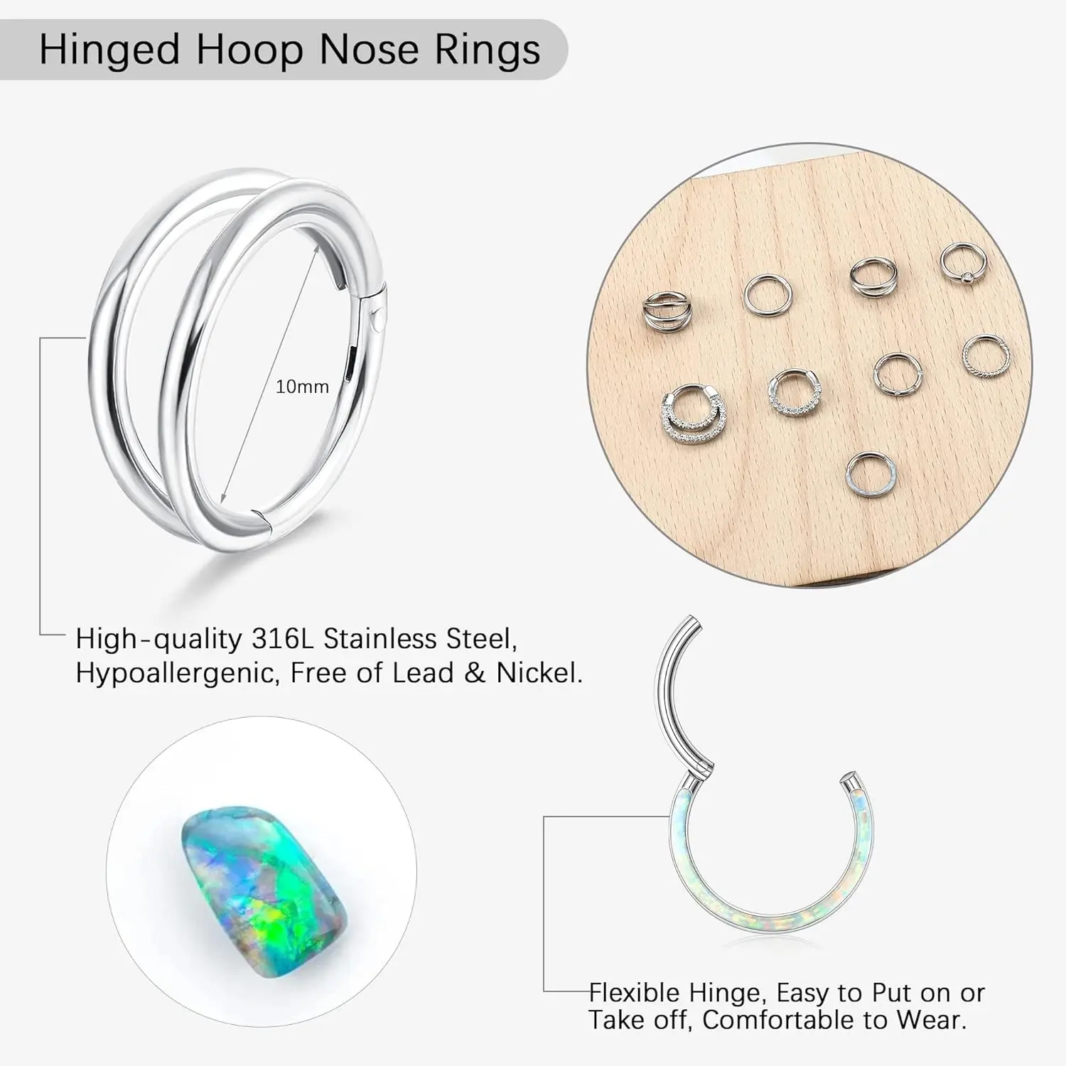 ·Secure Fit: Each hinged nose ring provides a secure fit, ensuring your jewelry stays in place throughout the day or night.