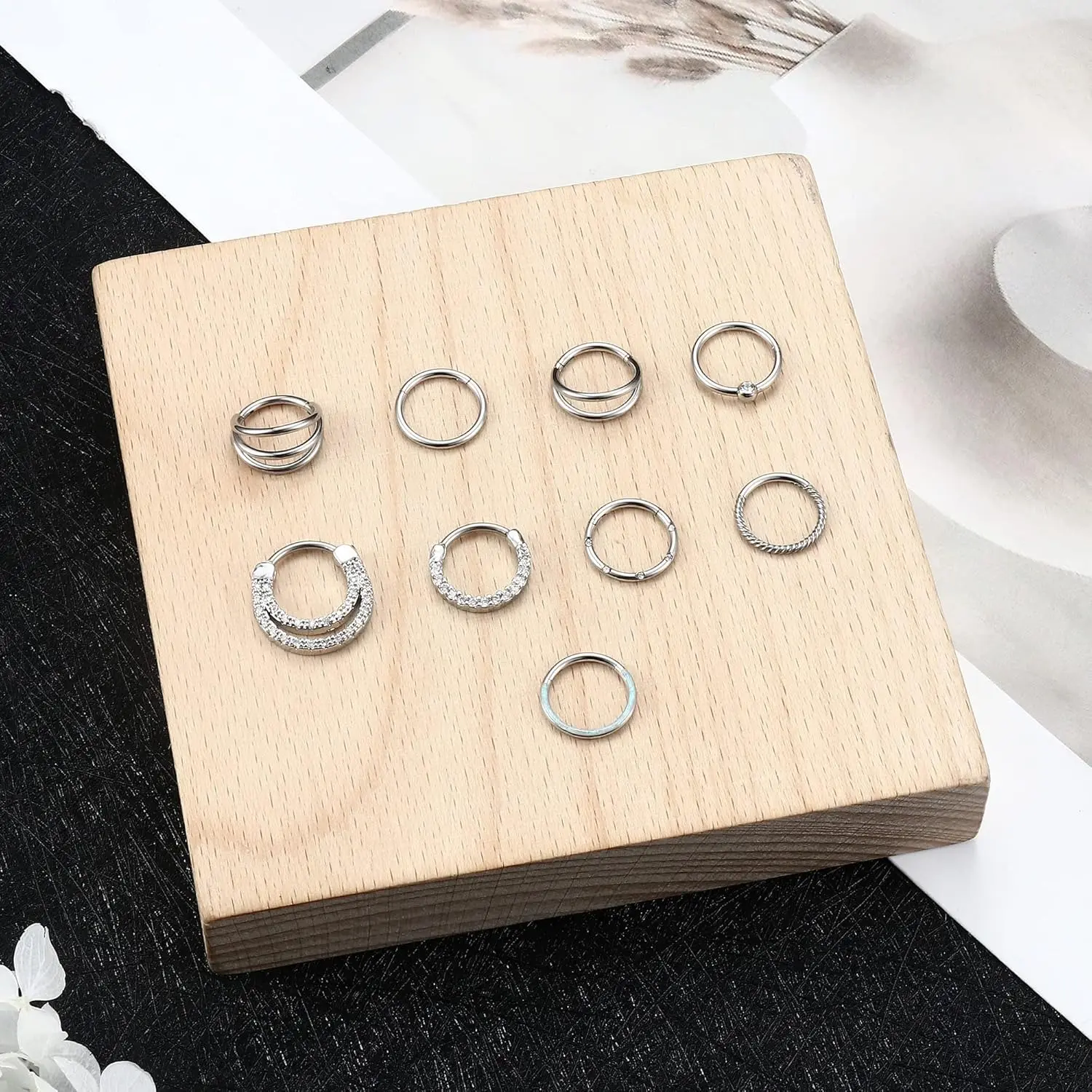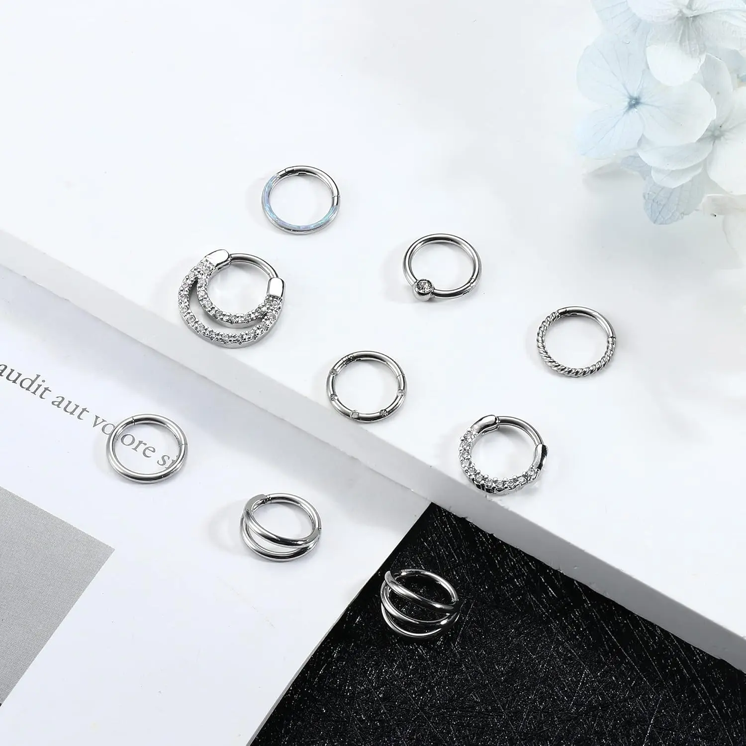 ·9-Piece Set: Includes 9 pieces of stainless steel septum rings and nose hoops, offering a variety of sizes and styles.