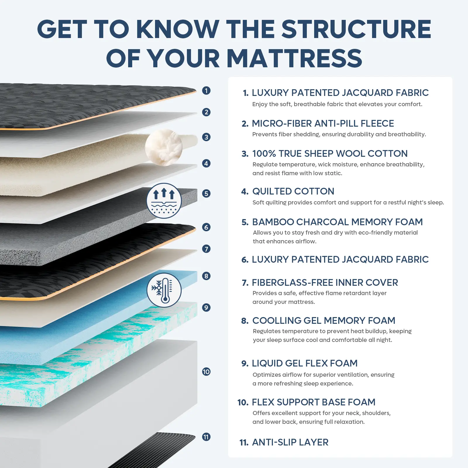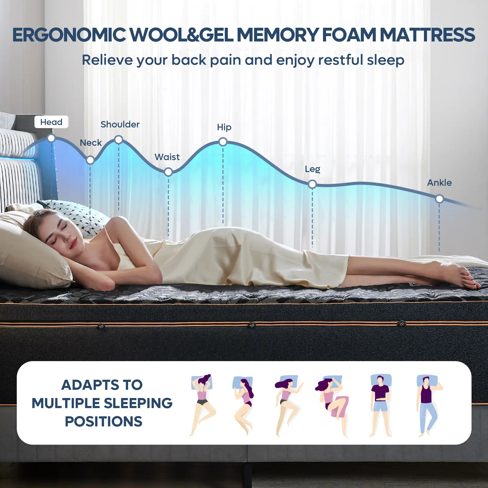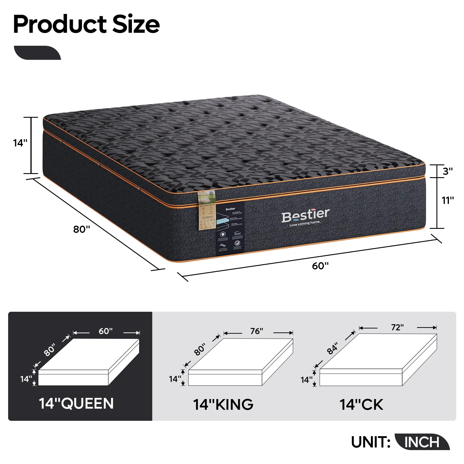 Bestier 14-inch Mattress Medium Firm Organic Wool Gel Memory Foam Ergonomic Bedding in a Box