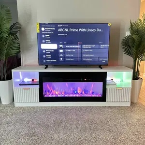 Elevate your space with the Besterier 70” Fireplace TV Stand! 🔥📺 Supports TVs up to 80”, realistic 36” electric fireplace, vibrant flame effects, colorful LED ambient lighting, and sleek fluted design with tons of storage. Cozy vibes for movie nights or gaming setups! Who’s adding this to their living room? Drop a 🔥 below! #FireplaceTVStand #viral  #ElectricFireplace #HomeDecor #LivingRoomGoals