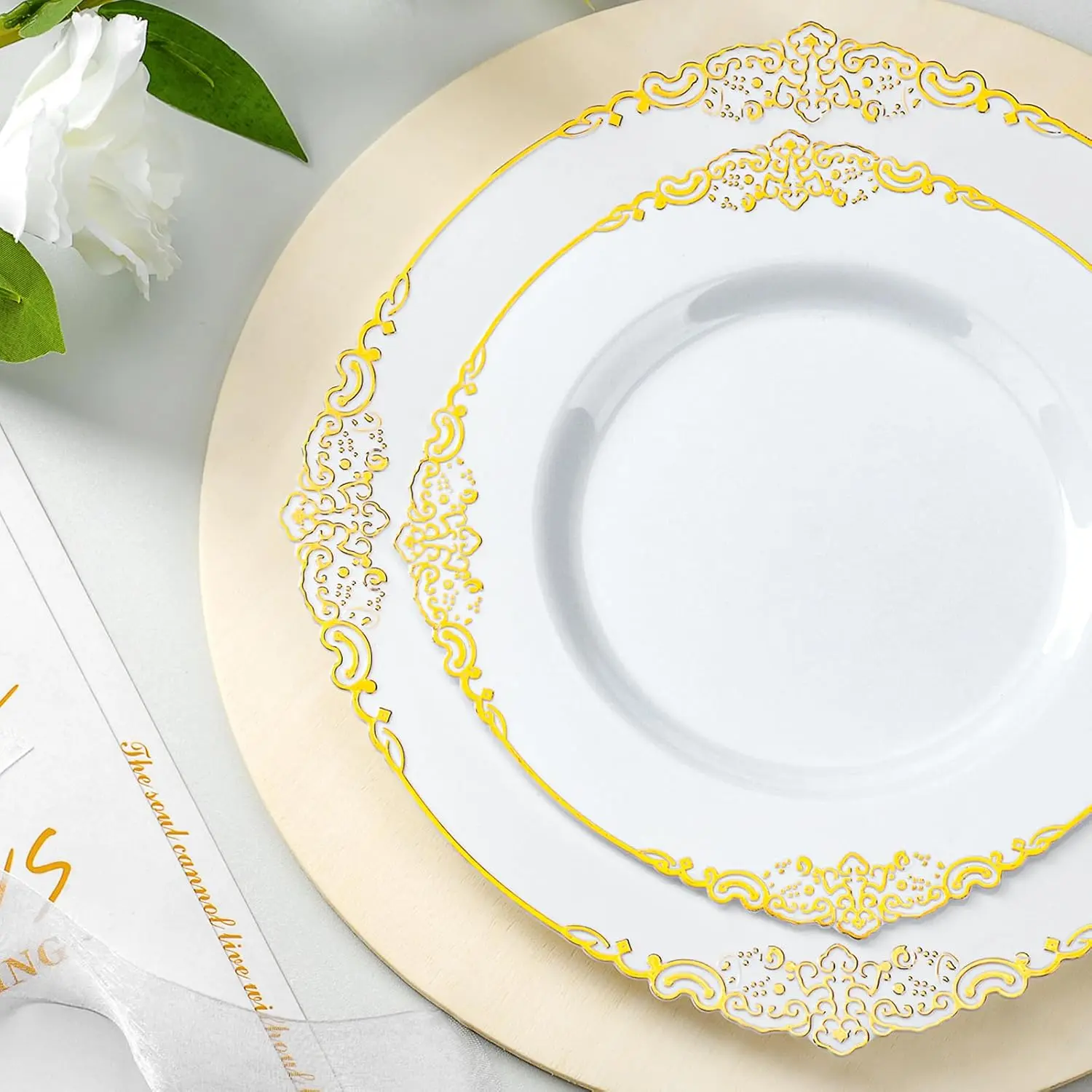Crafted with a refined vintage patterned rim and a smooth, glossy finish, our disposable plastic plates bring timeless elegance to your table. Perfect for weddings, birthdays, and family get-togethers.