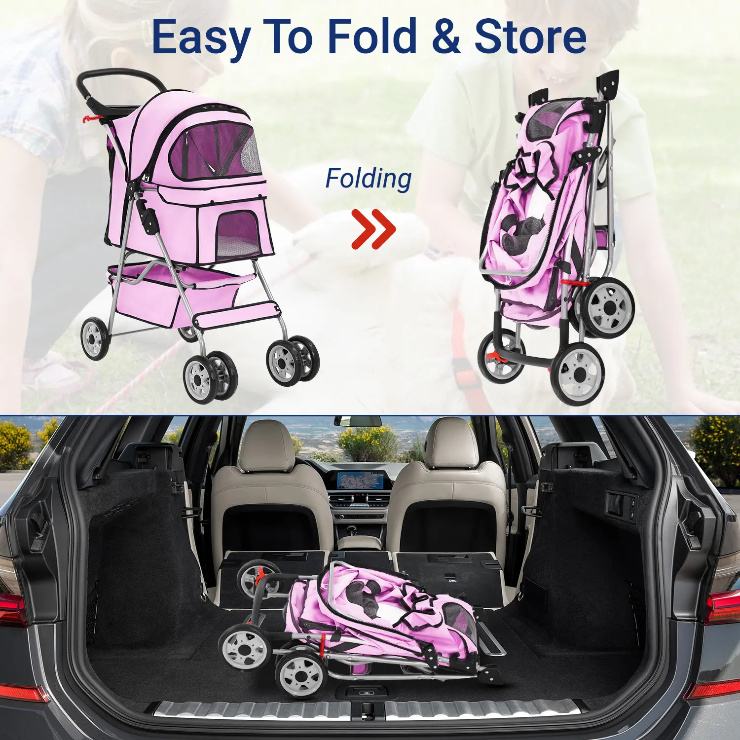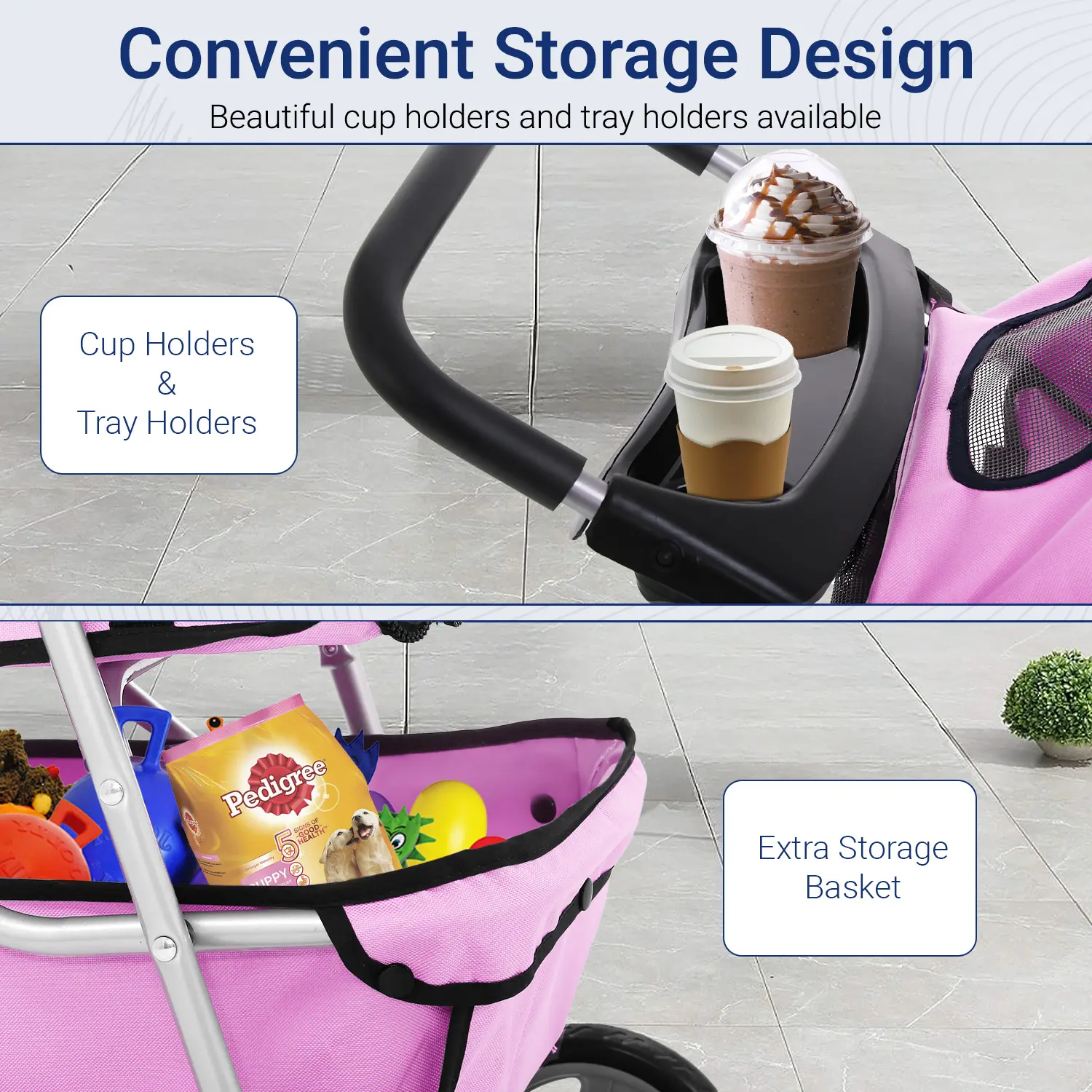 Keeping a close eye on your pets can be easier and each compartment of this pet stroller features zippered mesh screen windows for easy zip and go. On top of watching out for your pet, our jogger stroller also provides the proper ventilation for small animals.
