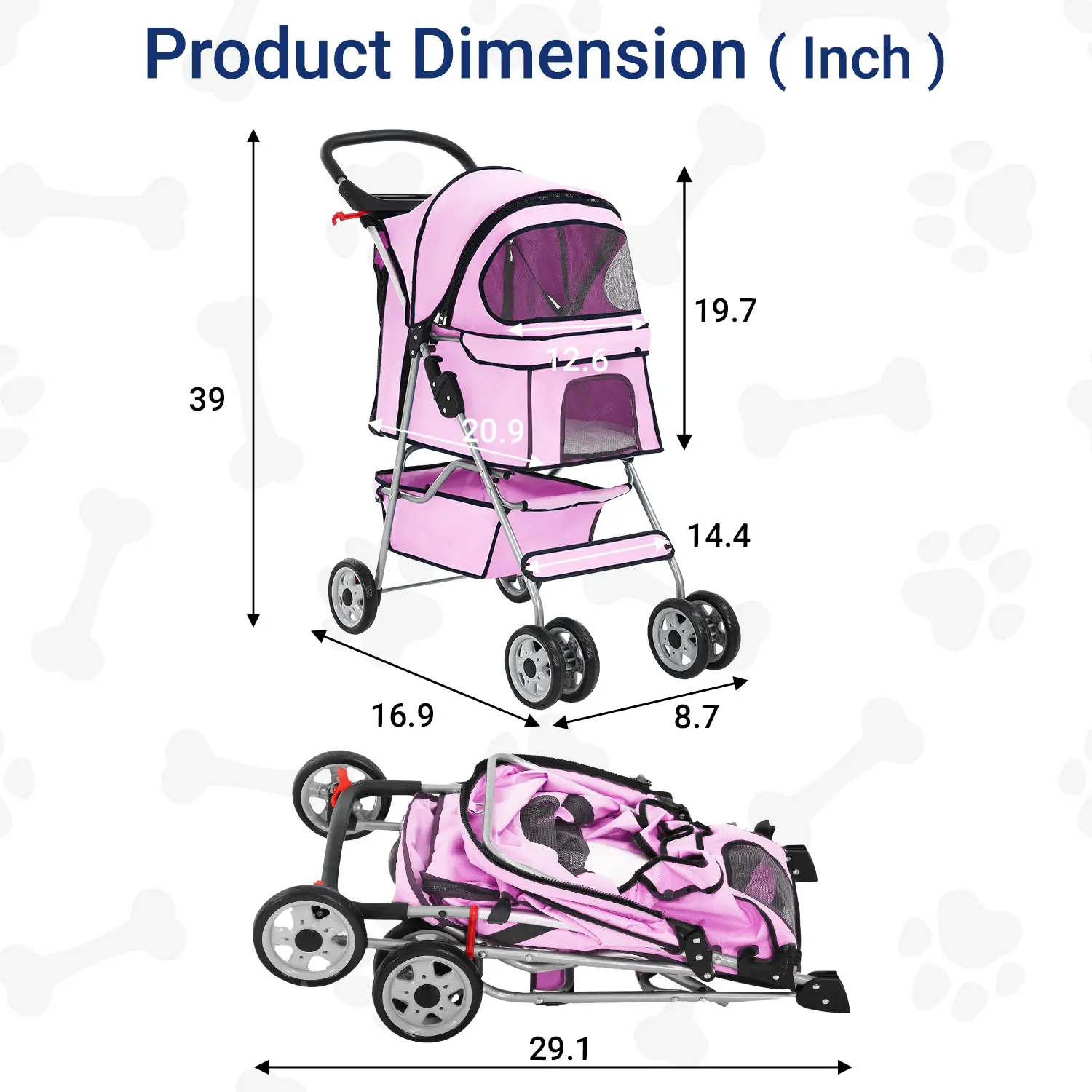 From paws to tail of our jogger stroller, you can rest easy that your dogs and cats are always safe with its rear brakes and safety tether. This pet stroller also features a pad inside the cart for added comfort as well as a upper and a lower safety leashes.