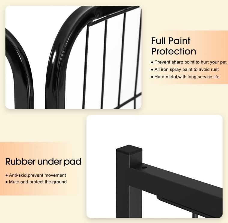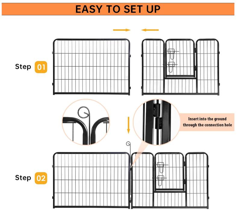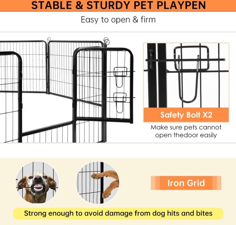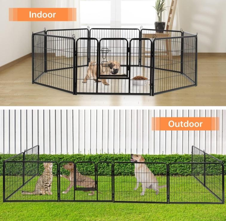 This dog playpen is user-friendly with simple assembly instructions. It sets up quickly and collapses easily for convenient storage. No tools are required, making it ideal for travel and camping. The sturdy metal construction ensures durability. Suitable for both indoor and outdoor use, this playpen is a practical choice for pet owners.