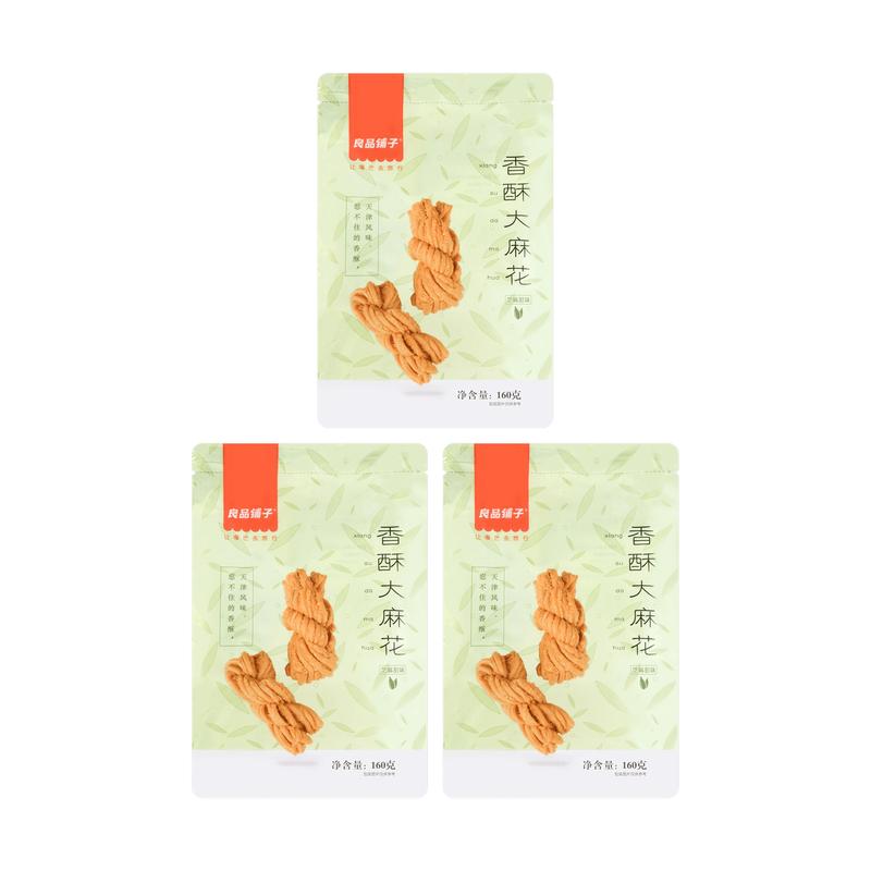 BESTORE Crispy Sesame Twist Snacks - Sweet Flavor, 3 Pack (160g x 3) - Crunchy Chinese Traditional Pastry, Perfect for Snacking & Tea Time