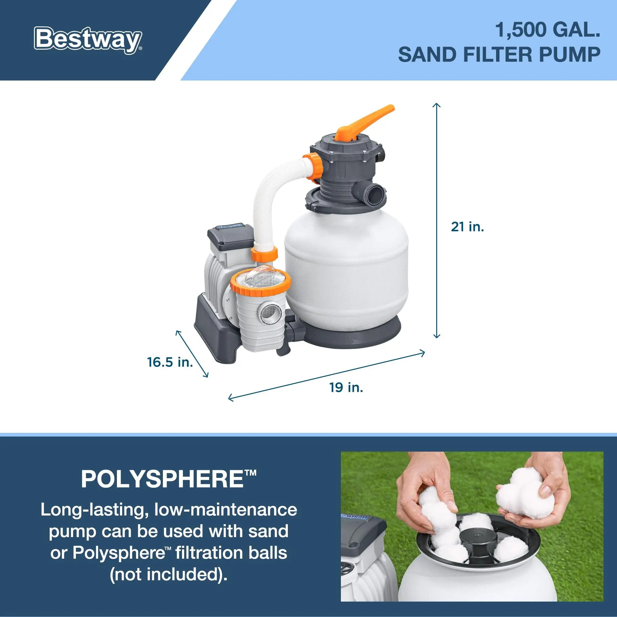 Includes a 1,500 GPH sand filter pump, a ladder, and a convenient secure pool cover