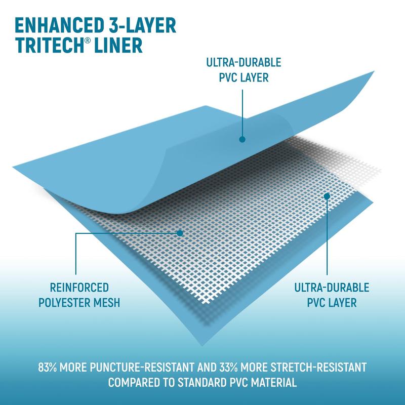 Featuring a sturdy DuraPlus liner, this backyard round pool is made out of a 3-layer material fortified for strength and to help resist punctures compared to standard PVC