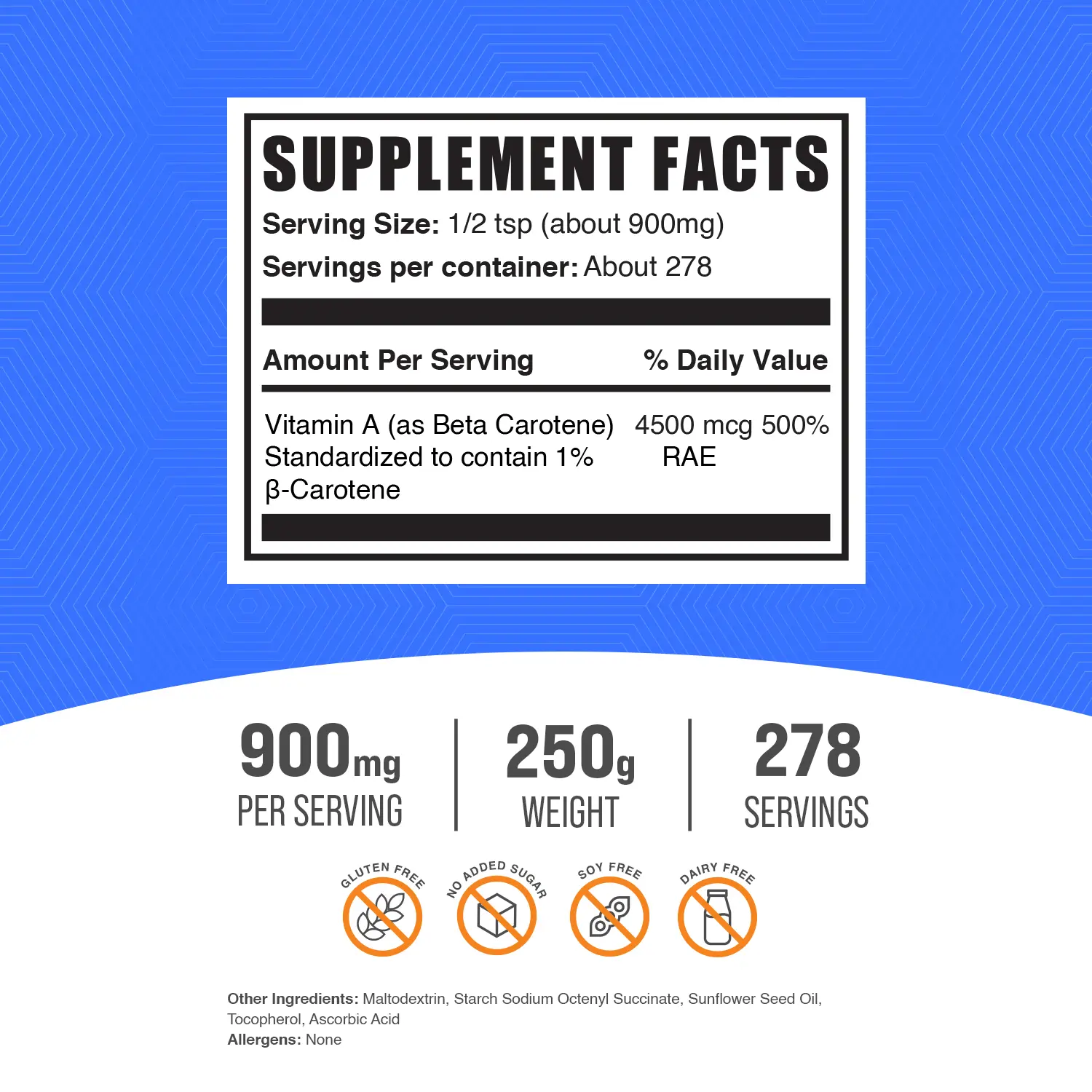Vision health support - With its high levels of Vitamin A, Beta Carotene 1% has been shown to promote healthy vision and protect against age-related macular degeneration. Keep your eyesight sharp and clear with this essential nutrient.