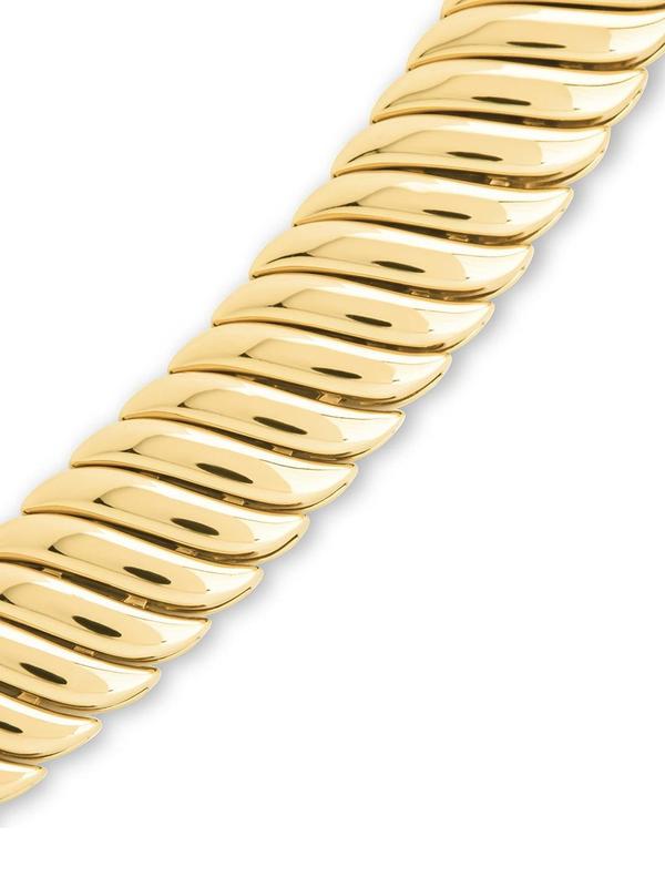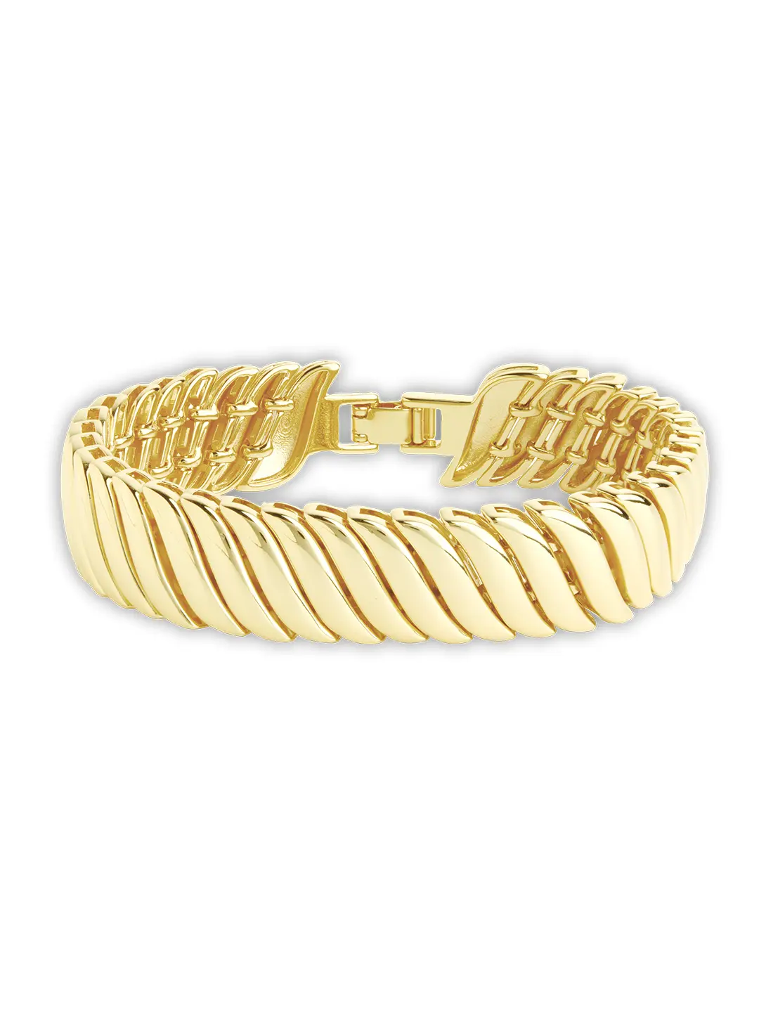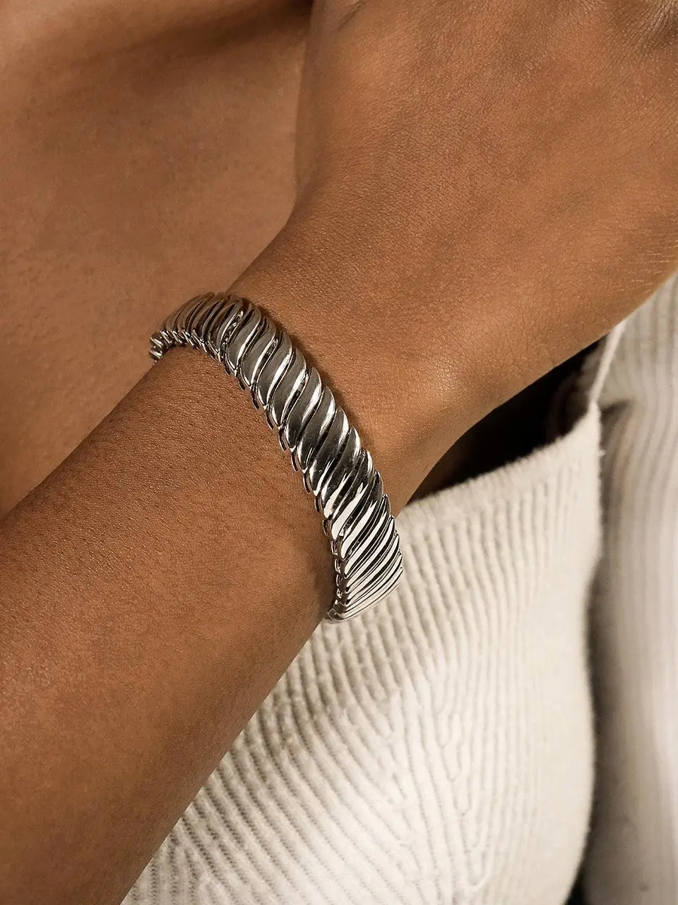 Bold, sculptural, and effortlessly chic—the Bethany Ripple Bracelet makes a statement with its fluid, wave-like design. The watchband-inspired links add a touch of vintage glamour, perfect for stacking or wearing solo as a sleek accent.