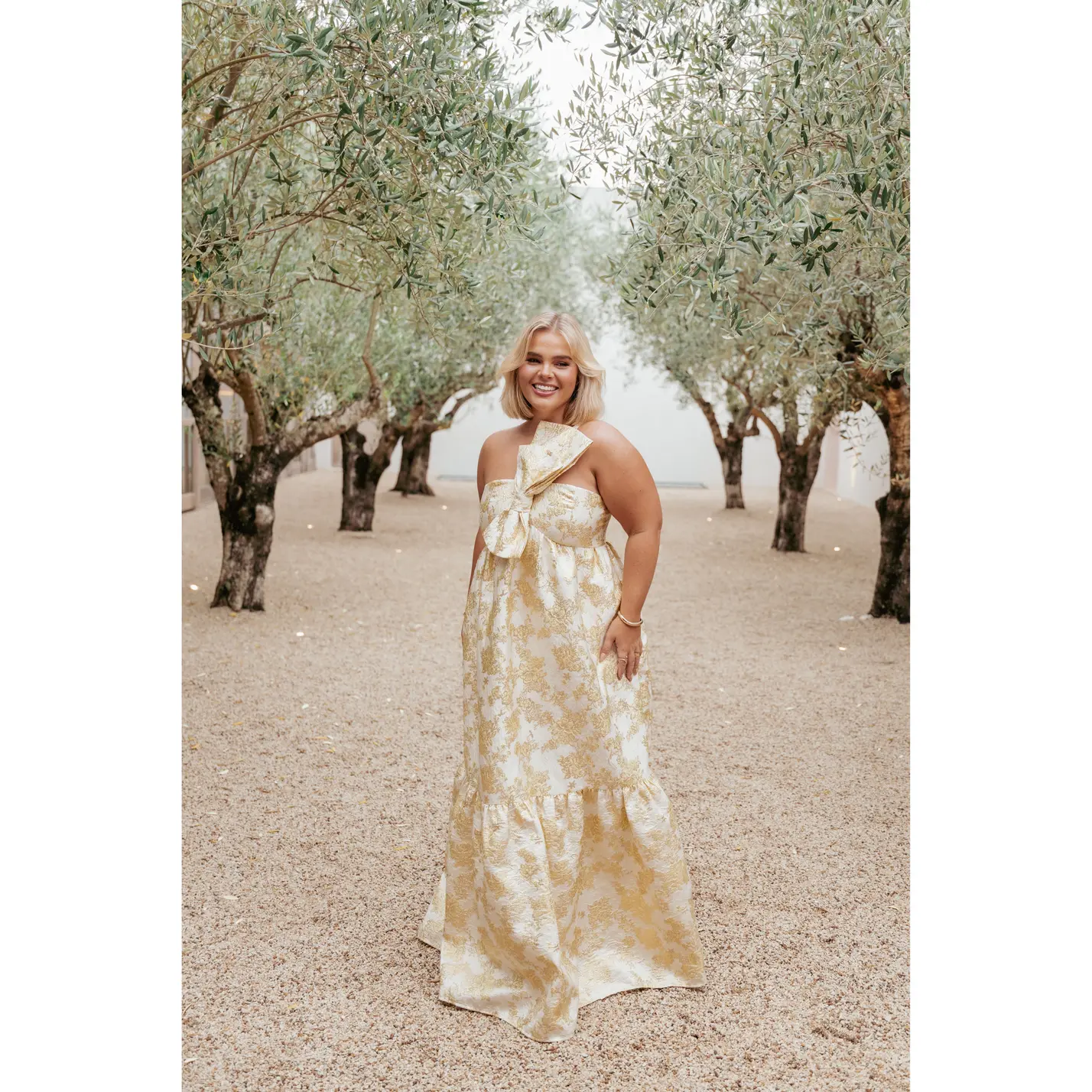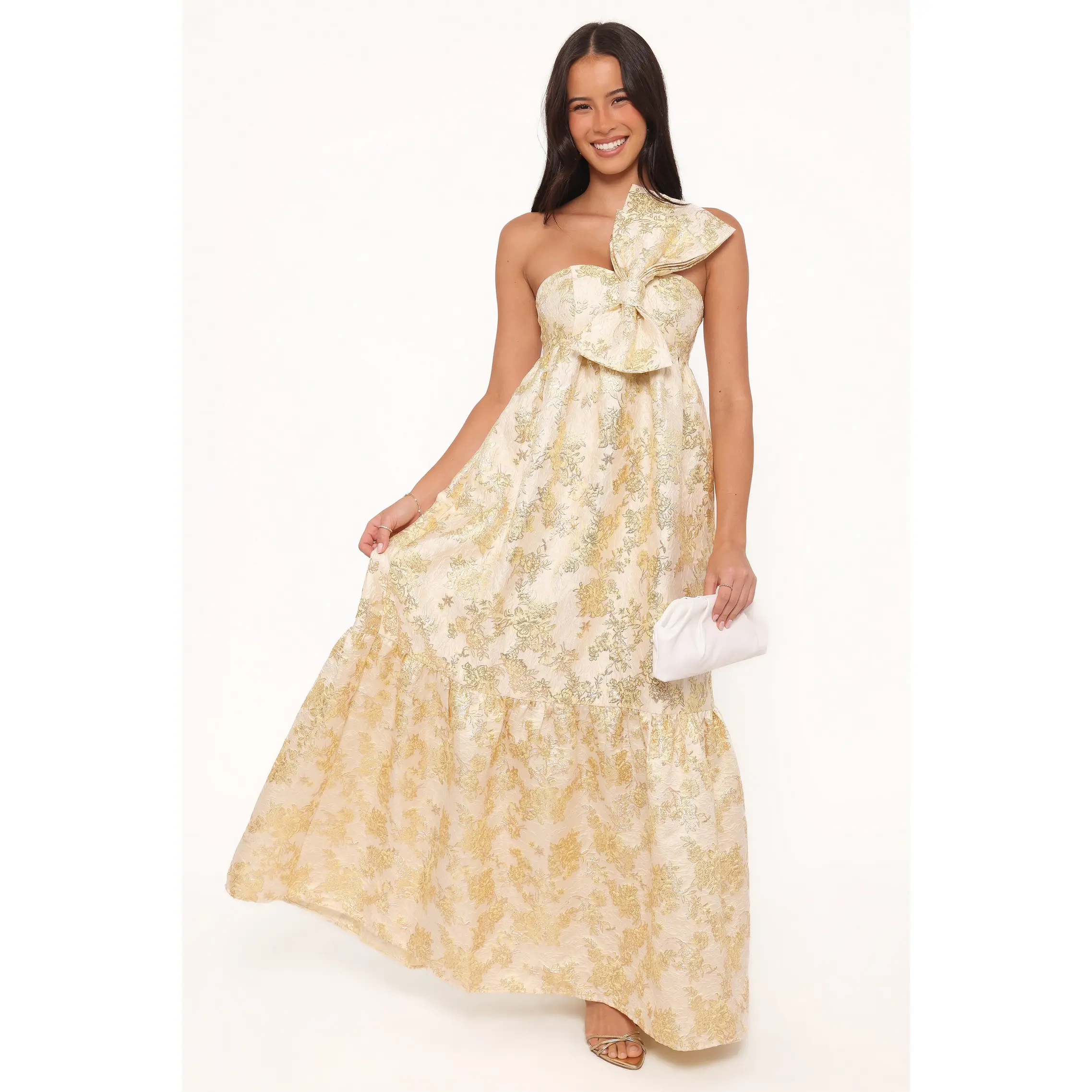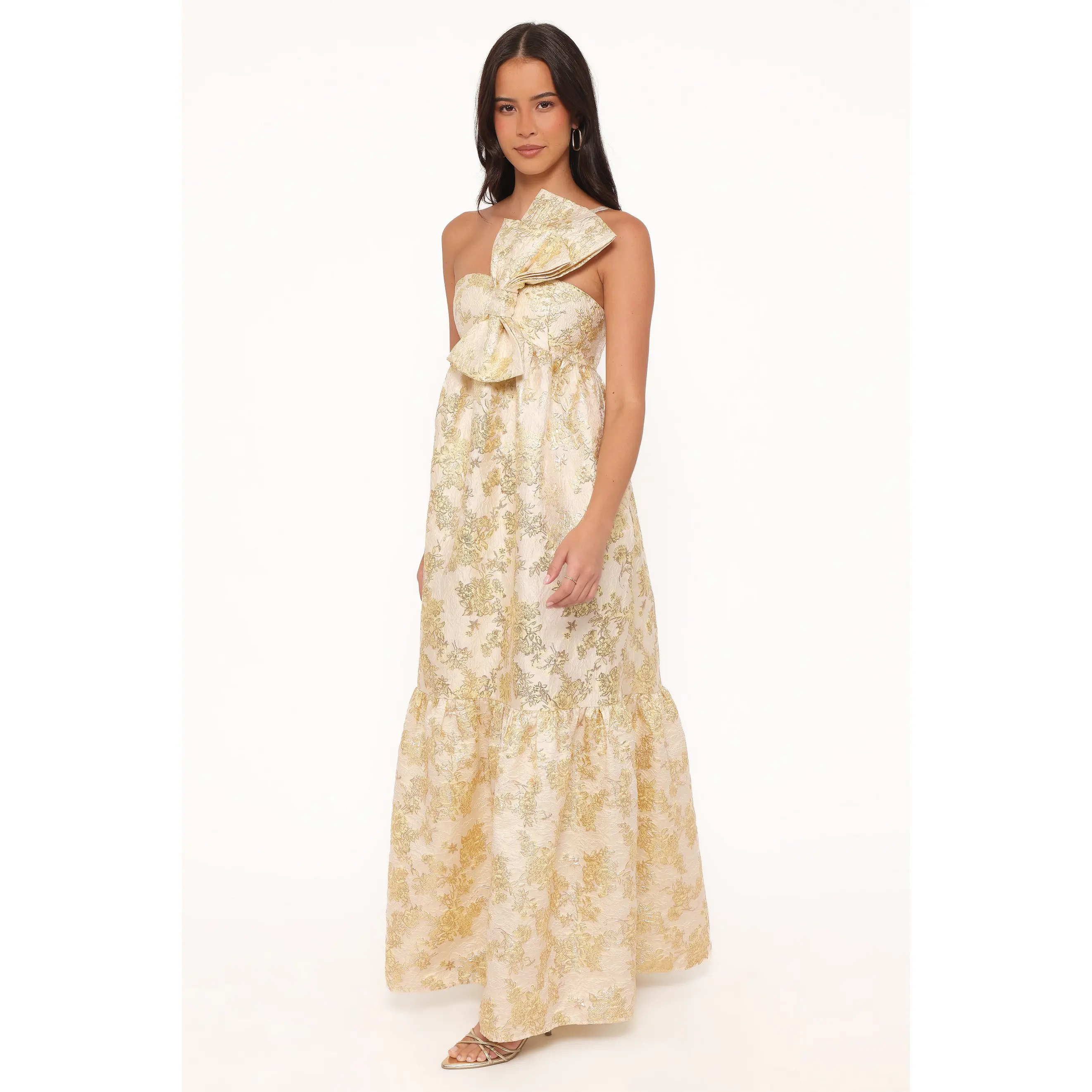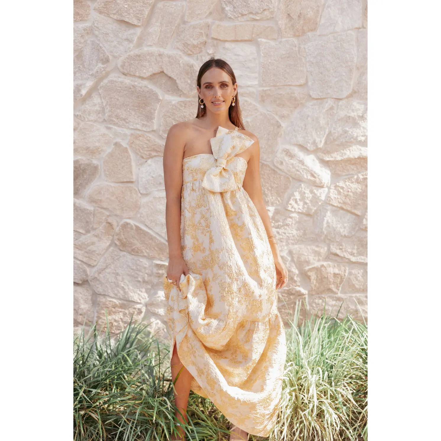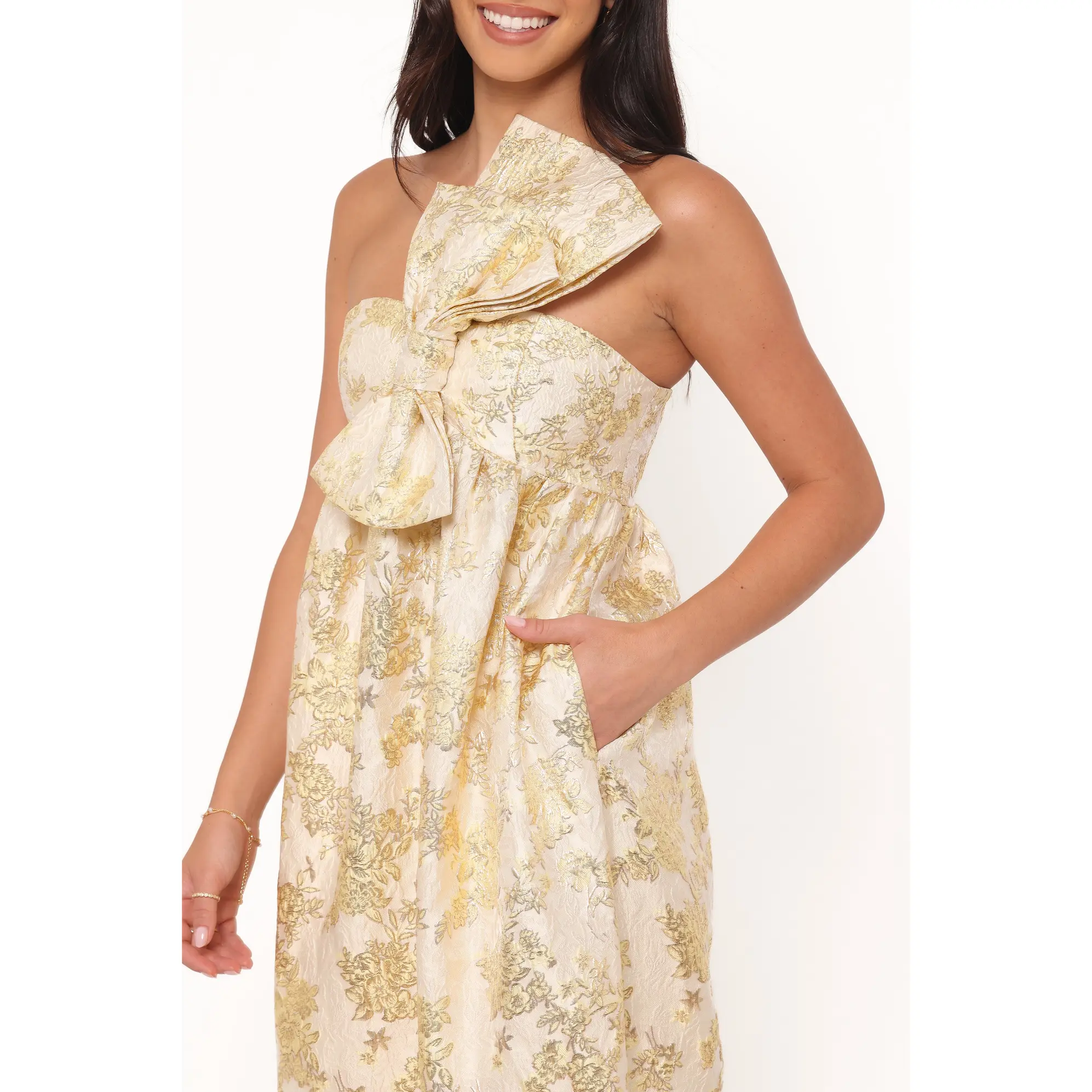 5. Betina Bow Front Maxi Dress - Yellow Brocade