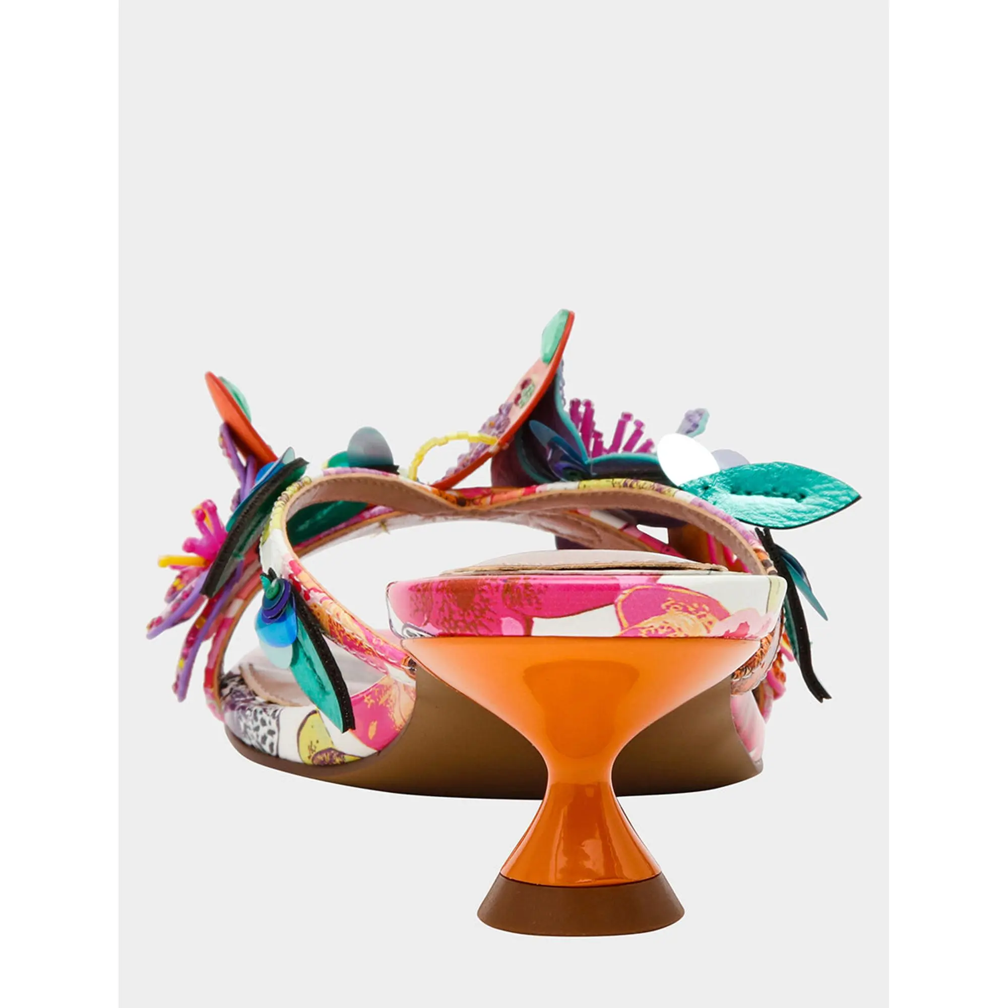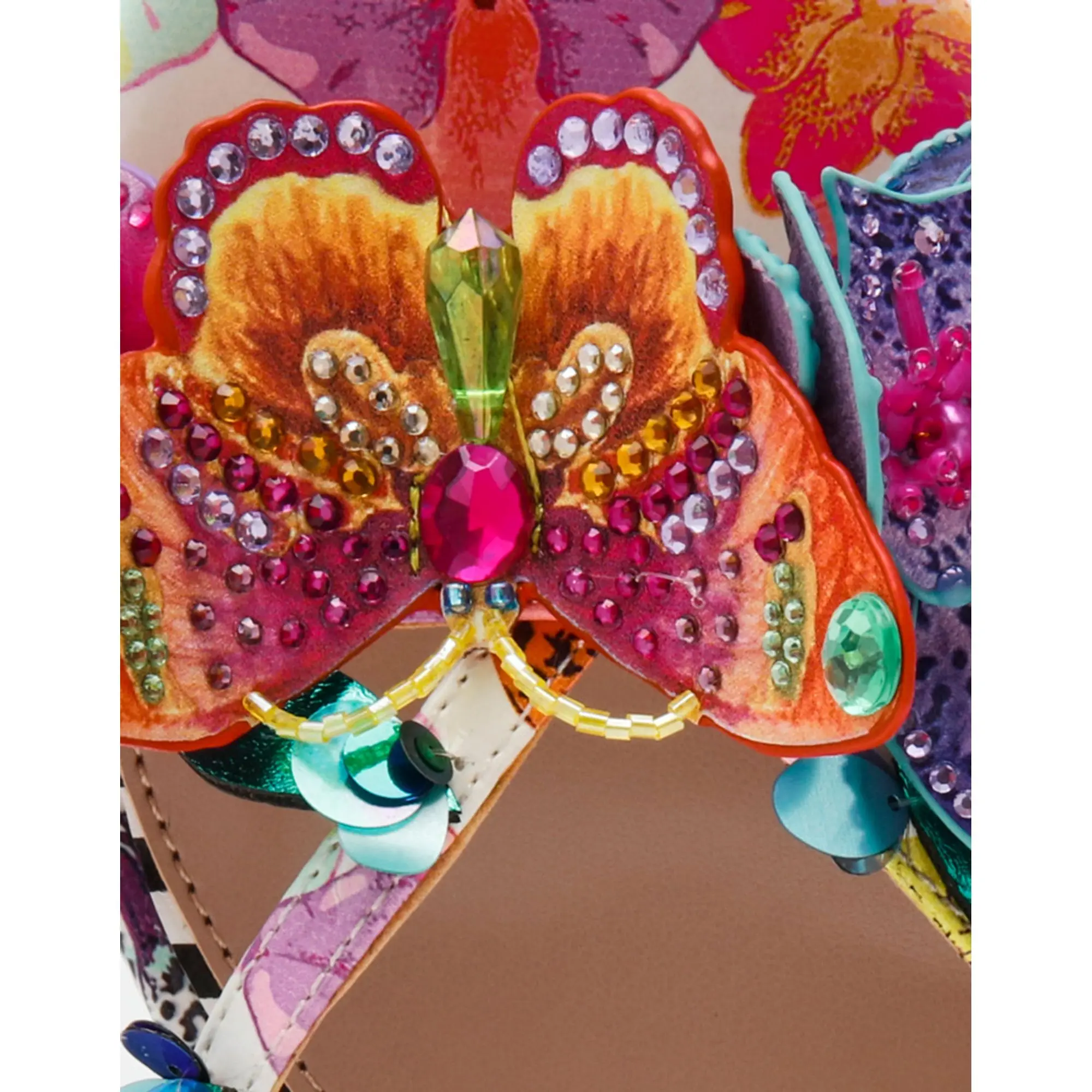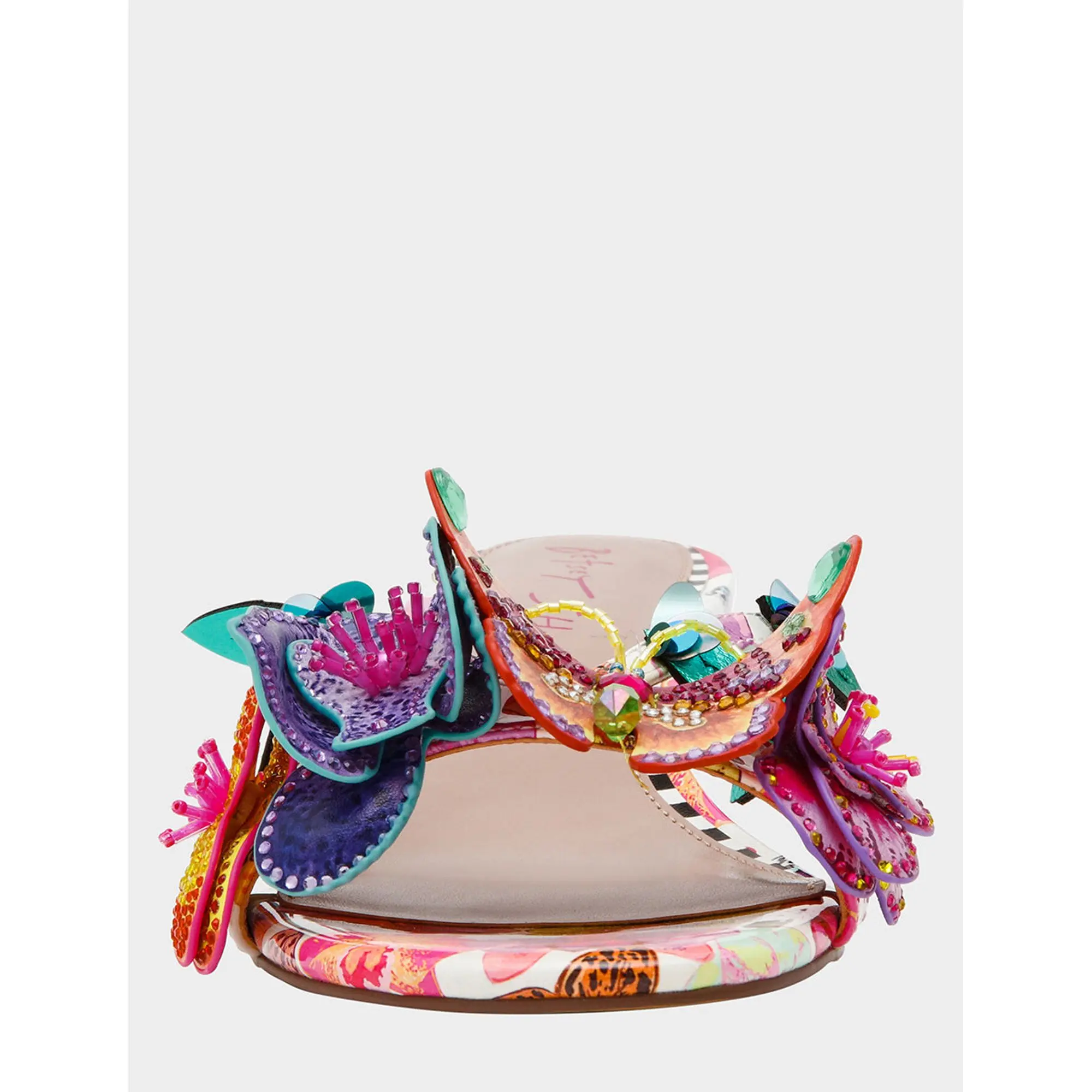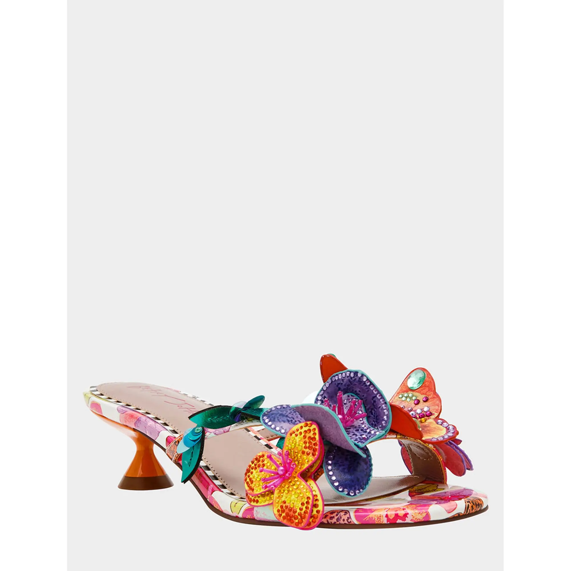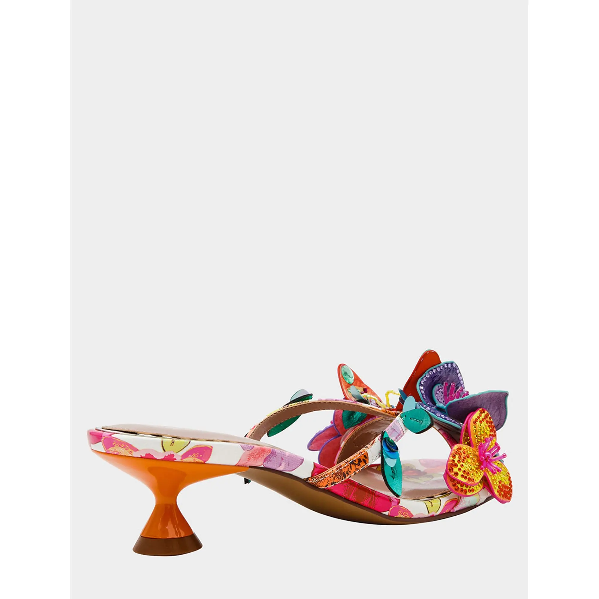 Step into whimsy with the BEATRIZ WHITE MULTI kitten heel dress sandal—a playful take on everyday elegance. Adorable 3D flowers and butterflies dance across the upper, while shimmering rhinestones catch the light with every step. The modest kitten heel keeps you comfortable without sacrificing style, making this sandal perfect for adding a touch of enchantment to dresses, skirts, or special occasions. Because life's too short for boring shoes.