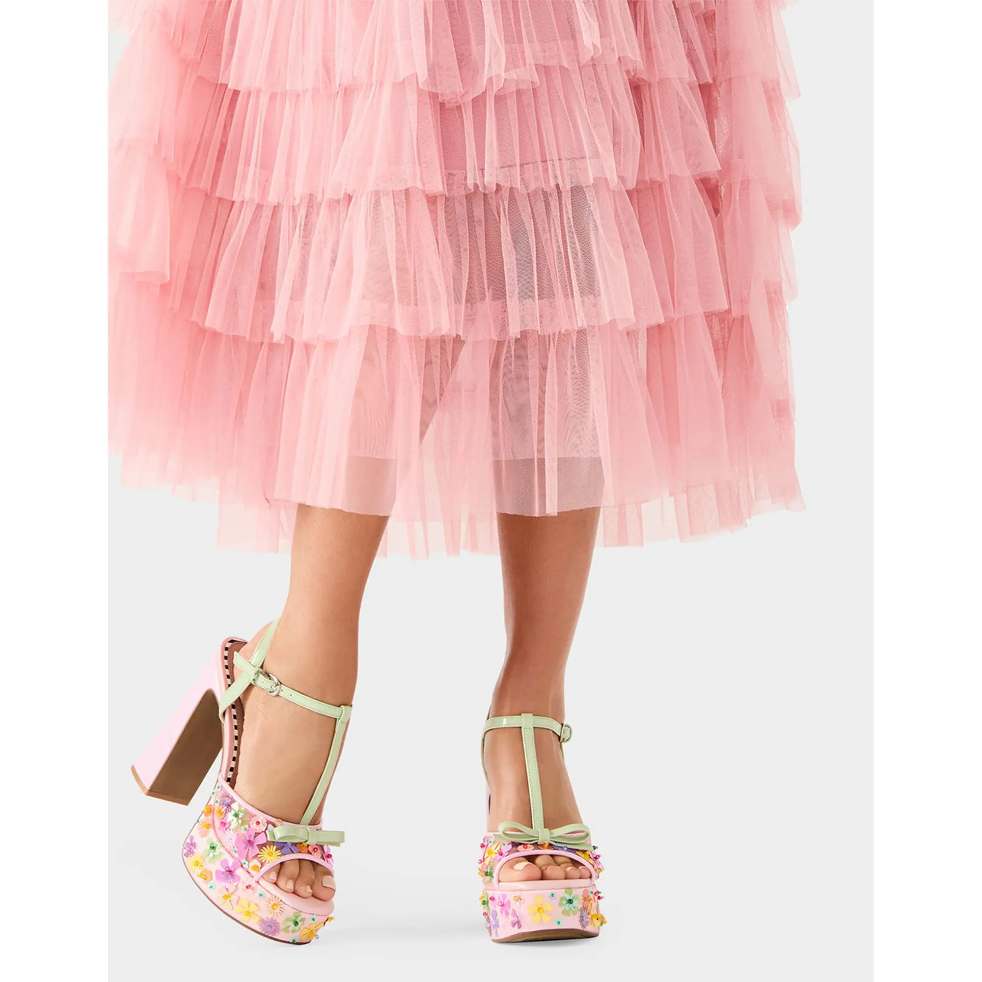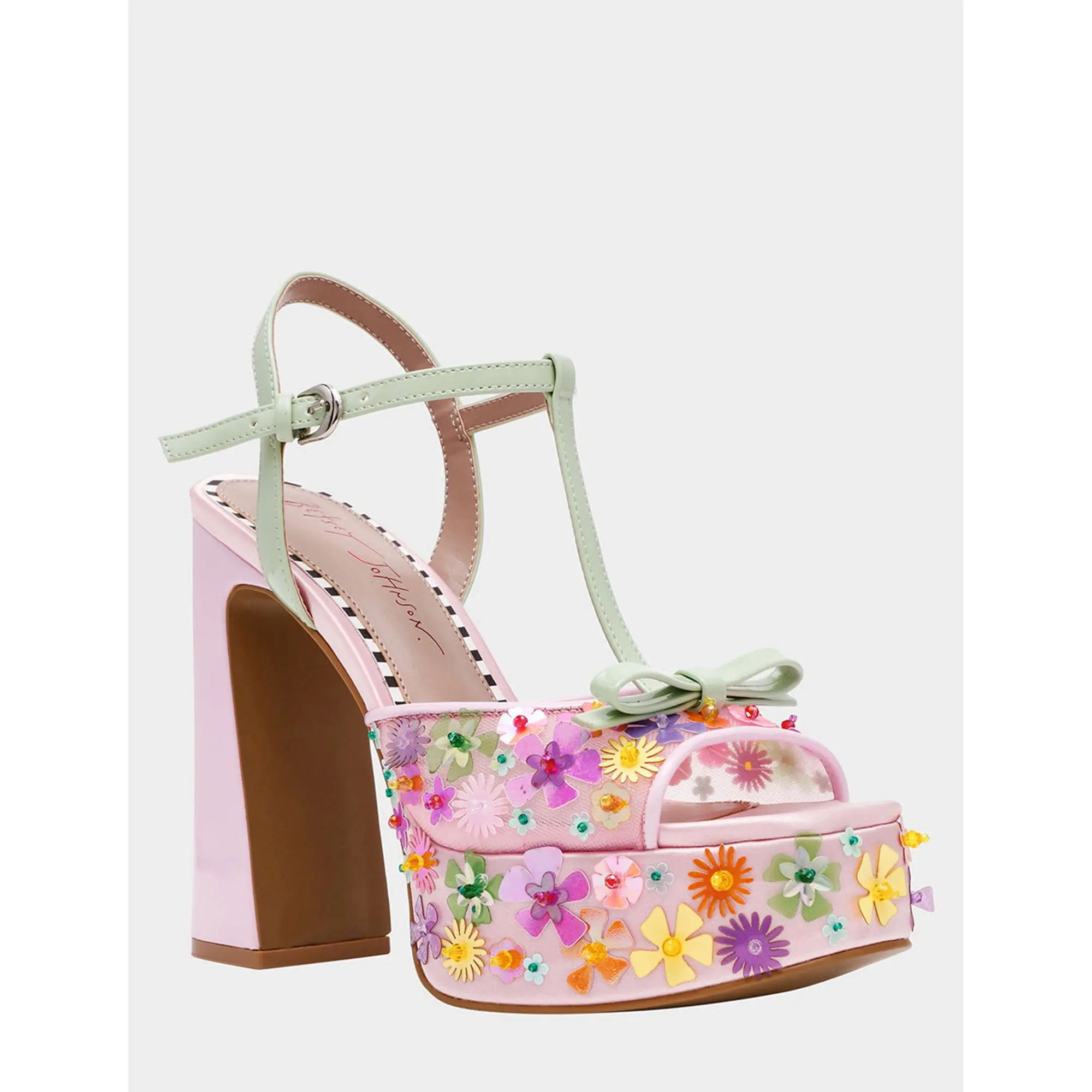 Get ready to sparkle with the MELODIE platform dress sandal! This fabulous shoe features delicate sequin flowers and an adorable bow that'll have everyone asking where you got your feet done. Perfect for making a statement at parties, weddings, or anywhere you want to shine bright.
