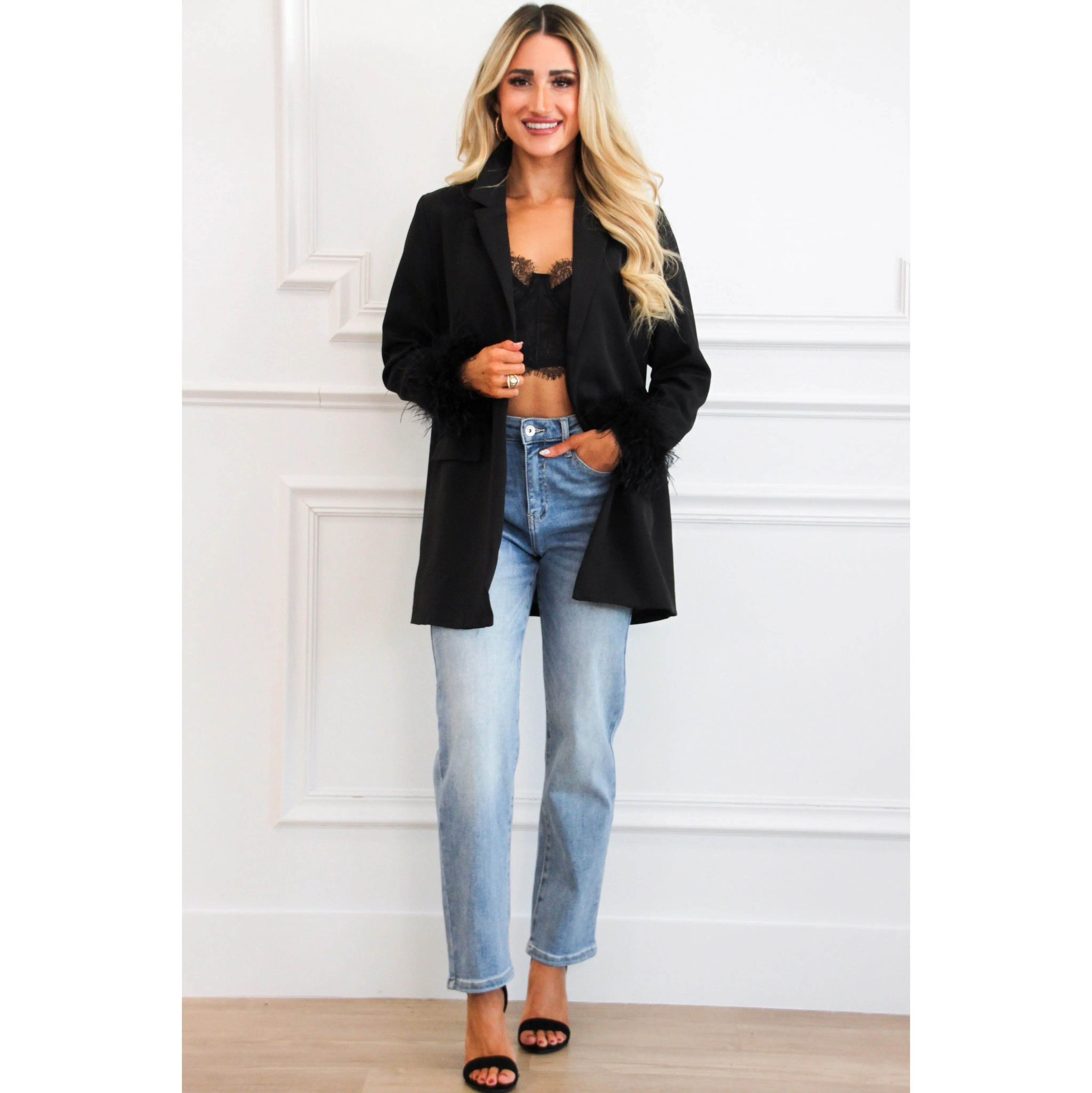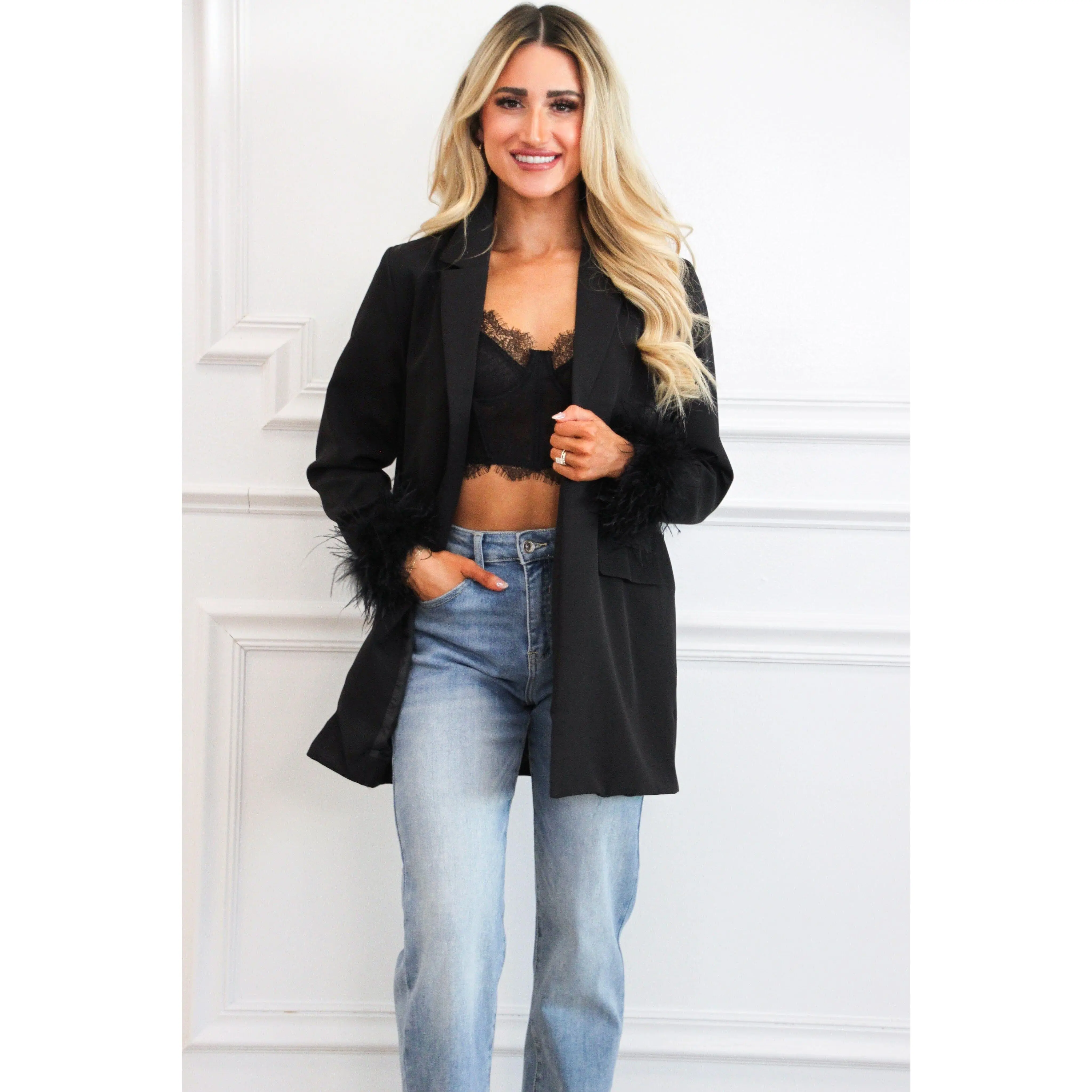 🖤 Betsy Oversized Feather Blazer 🖤 Bold. Luxe. Unforgettable. This statement blazer brings drama with feathered cuffs and an oversized fit. It’s perfect for nights out or elevated street style. ✨🔥 #FeatherBlazer #StatementStyle #OOTDInspo #BlackBlazer #ootdinspo