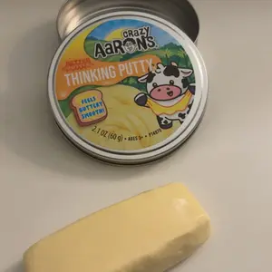 The consistency felt amazing and like a slime, but doesn’t dry out. The smell however, WAS accurate to butter, but not too appealing.