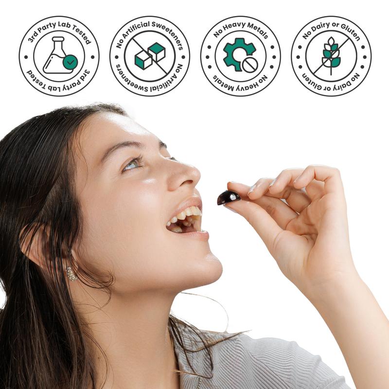 60 gummies | Pectin-based | No gluten | No added preservatives | No added refined sugar